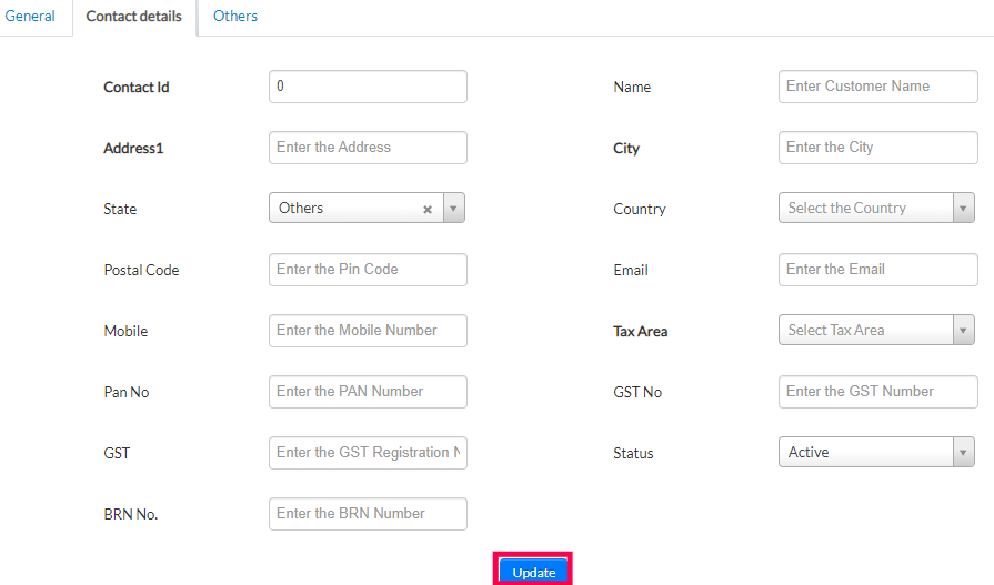 Step 5: Fill in the fields of the Contact Details section and click on the Update