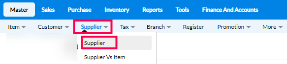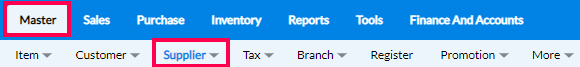 Step 1: In the main tab of RetailEasy on-cloud, click on Master > Supplier
