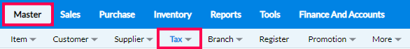 Step 1: In the main tab of RetailEasy on-cloud, click on Masters > Tax.