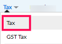Step 2: From the drop-down of Tax, select Tax to add VAT/CST/ Additional VAT.