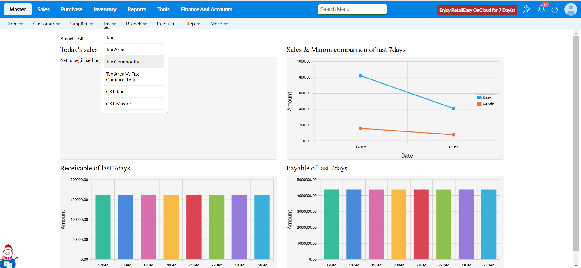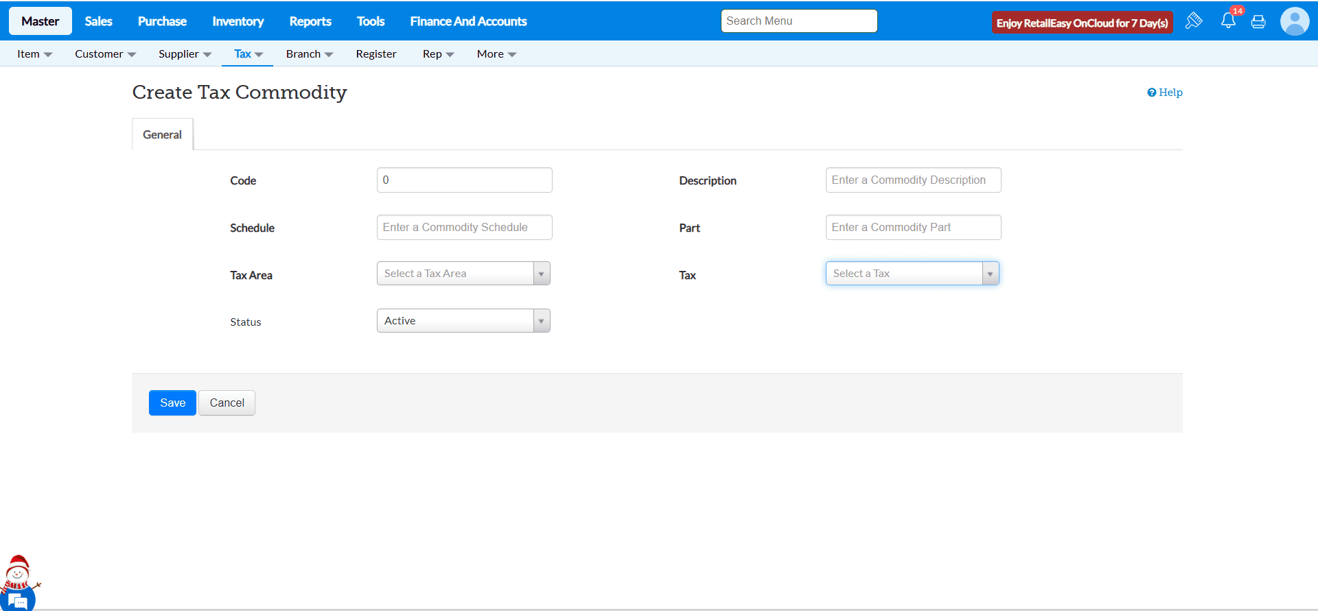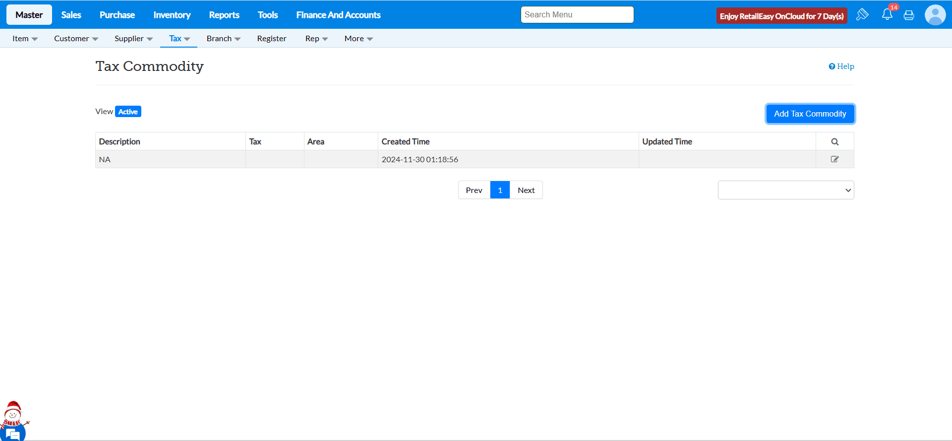 Click on Master > Tax.