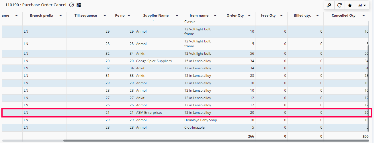 Canceled Quantity is 20 nos of 12 in Lenso alloy from ASM Enterprises which is can be verified from the Reports.