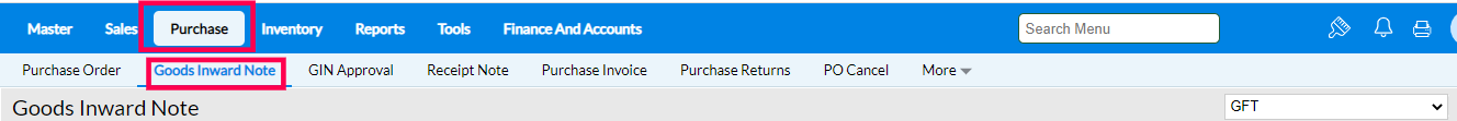 1. Goto Purchase >> Goods Inward Note