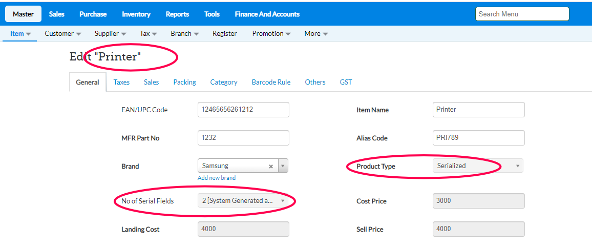 As serialized items cannot be quantified as a group due to unique identification numbers, RetailEasy on-cloud eliminates the complications of making separate entries for each item