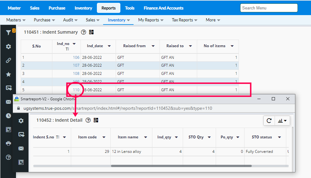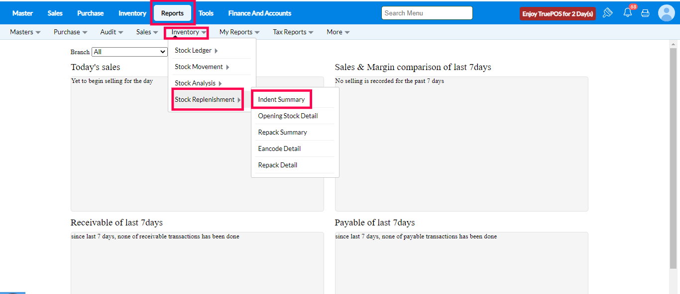 12. Goto >> Reports Inventory >> Stock replenishment >> Indent Summary.