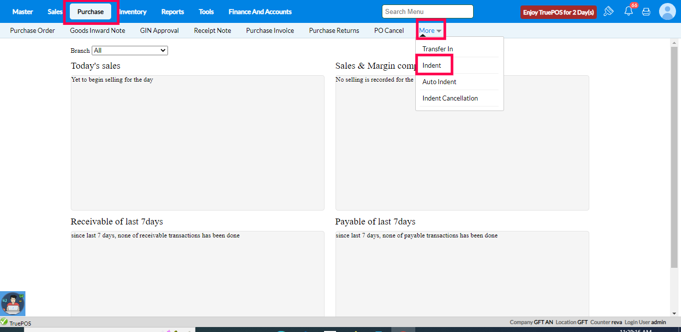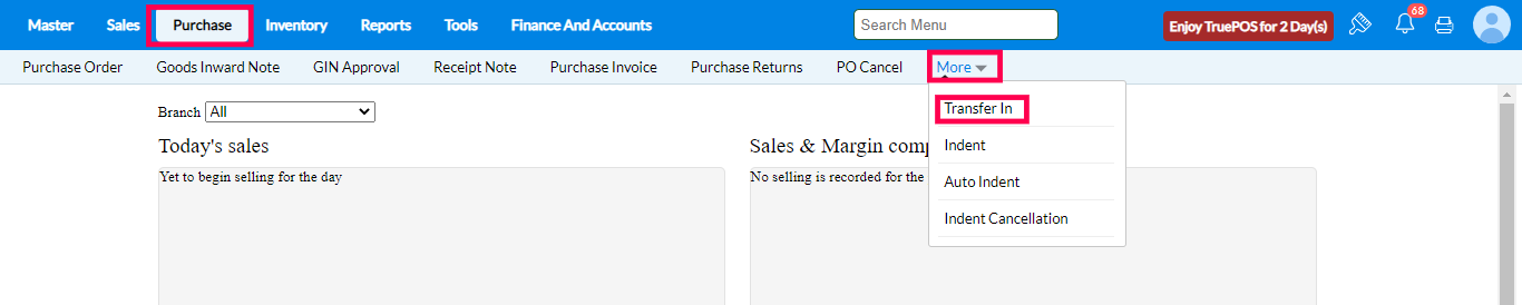 Achieve agile stock replenishment instantly by Transfer In operations with Indents, without creating Purchase Orders
