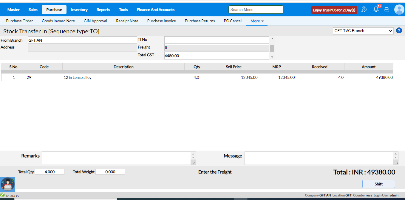 11.Thus the the Transfer In process is executed. Let us verify it in the Reports