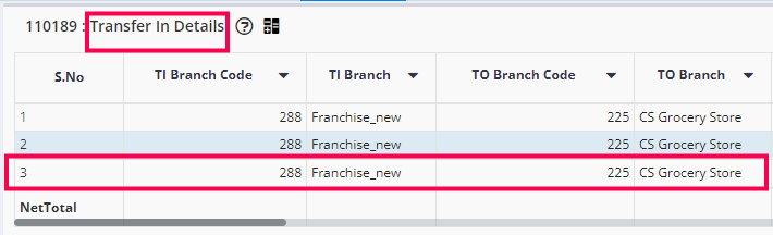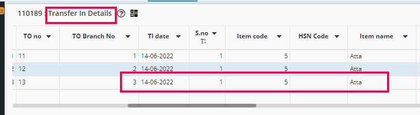 The TI NO. (Transfer In No.) is 3. This number is used as reference to view TI in Reports.