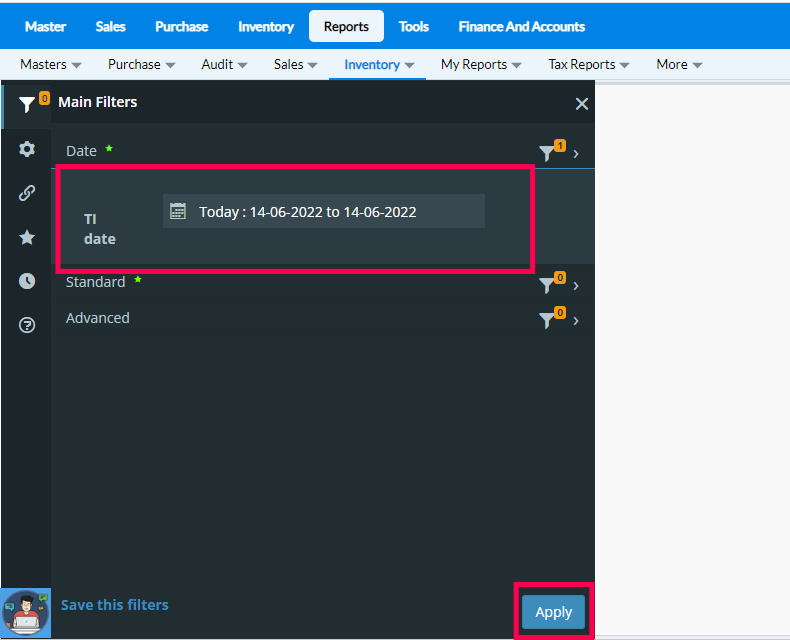 2. The TI date is selected as 14-06-2022 and click on Apply
