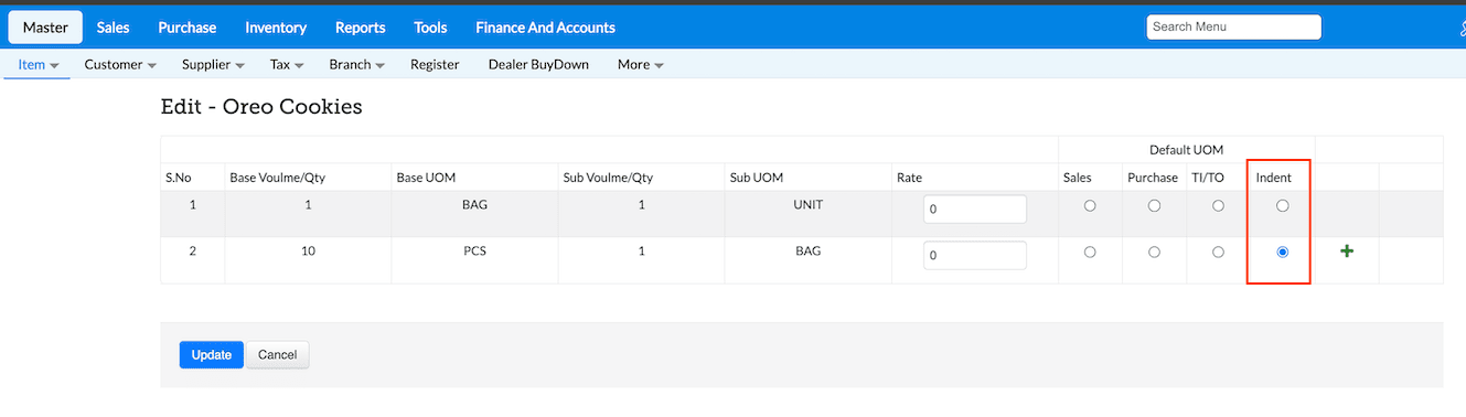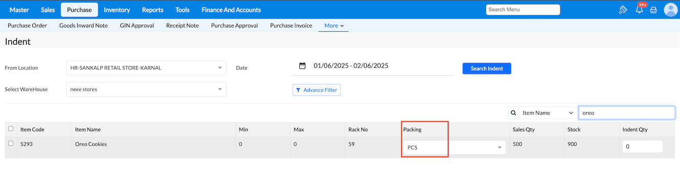FAQ- 1.Why are some items not showing in the Indent screen? Items may be excluded if they have zero stock and “Show Zero Stock Items” is set to No in Advance filter. 2. Why is the quantity shown in pieces (Sub UOM) instead of boxes (Base UOM)? 3. Why is the indent quantity showing as 0 for some items, even though sales quantity and stock quantity are still reflecting values? The indent quantity will appear as 0 for items where the calculated value goes negative. For example, if the sales quantity is 100 and the stock quantity is 400, then: