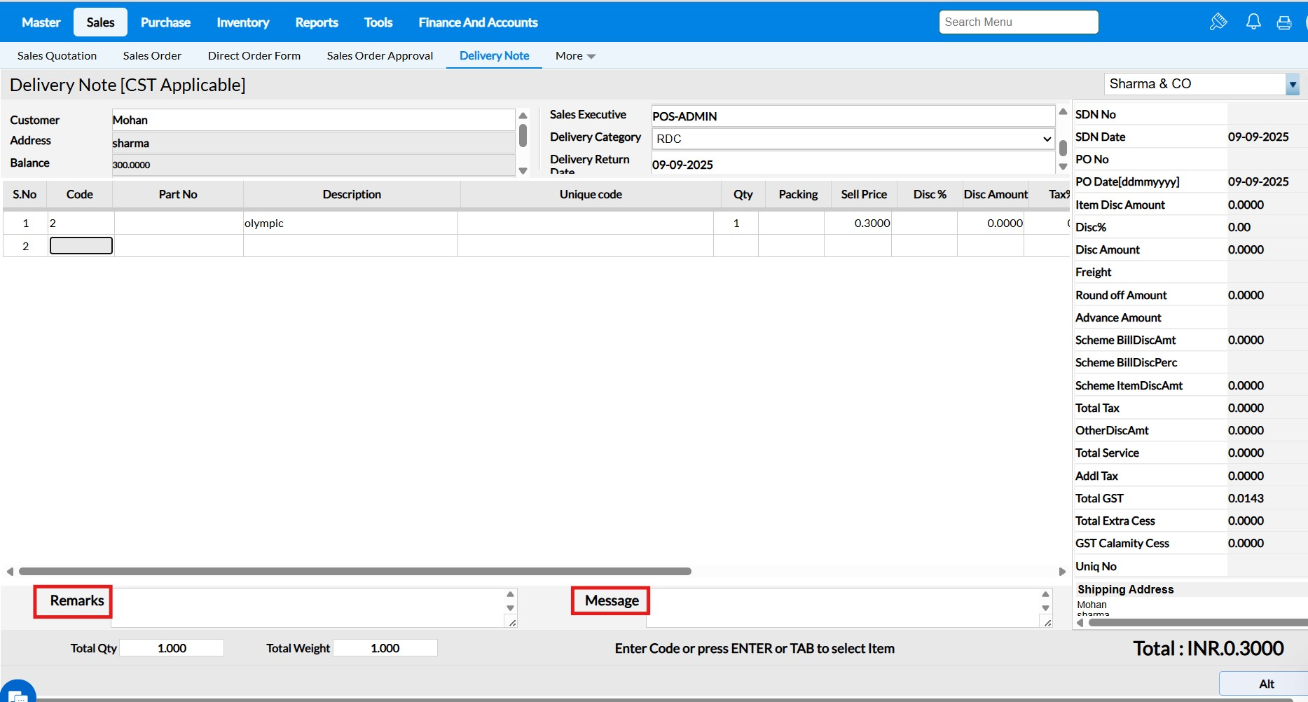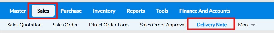 1. From Dashboard, Navigate to 'Sales → Delivery Note.