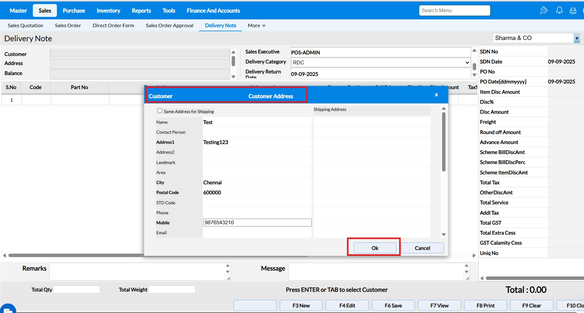 4. Verify the other details like Delivery Date, Delivery Time, Sales Executive, etc which can be edited if required any changes.