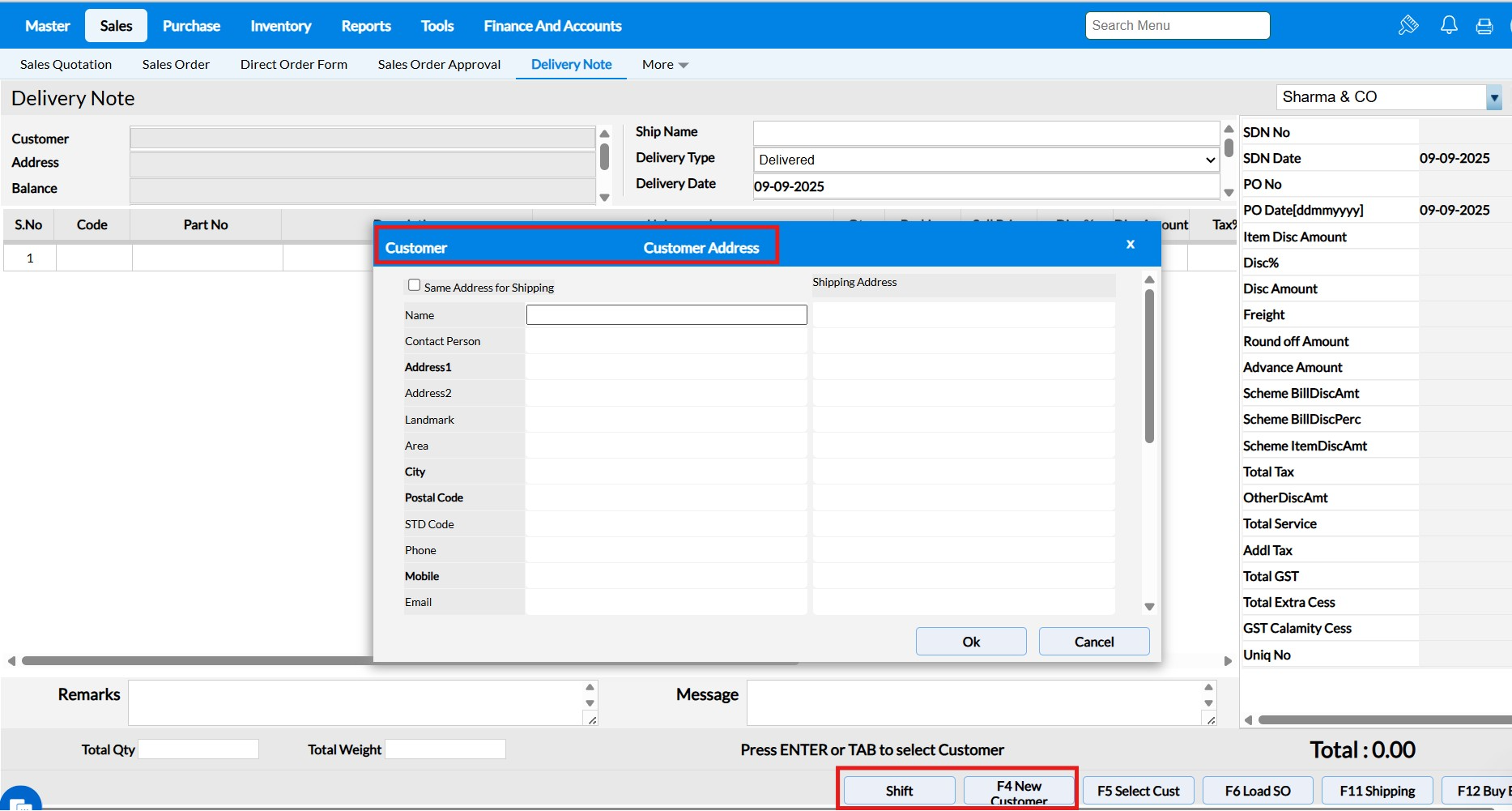 2. You can create the QuickAdd customer by using the function key 'New Customer' → Shortcut 'Shift+F4'.