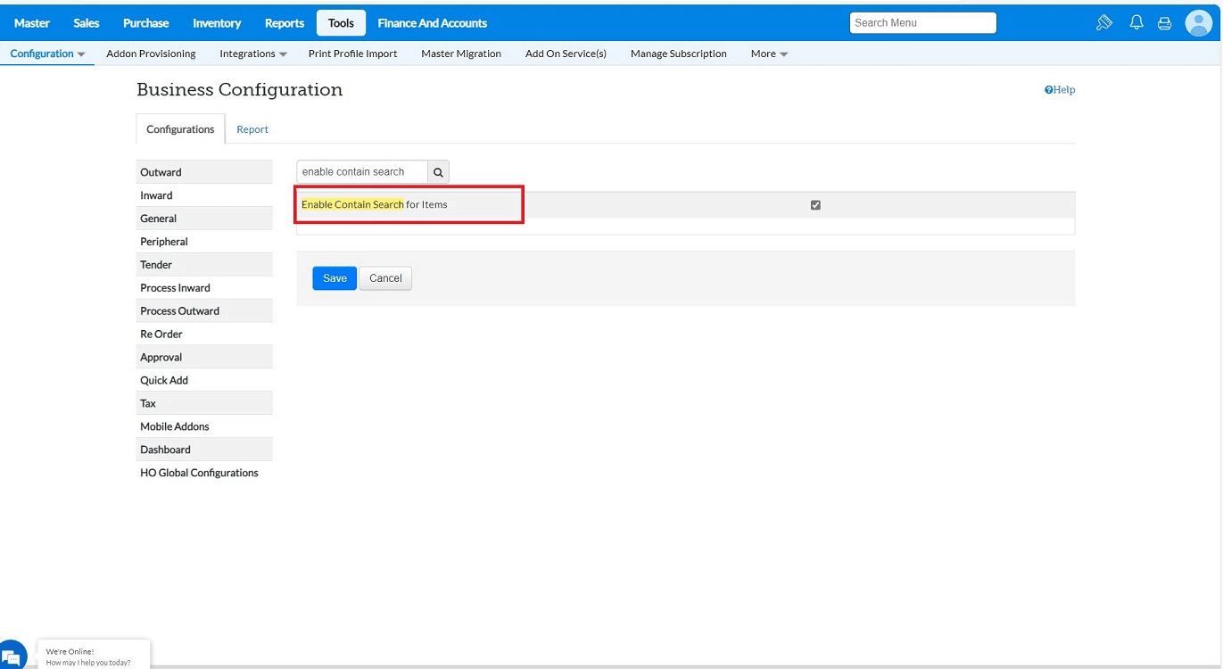 Ans:Go to Tools → Configuration → Business Configuration. Search for the setting "Enable alias code search for the item" and check if it is enabled. If it is enabled, kindly disable it and save the changes.