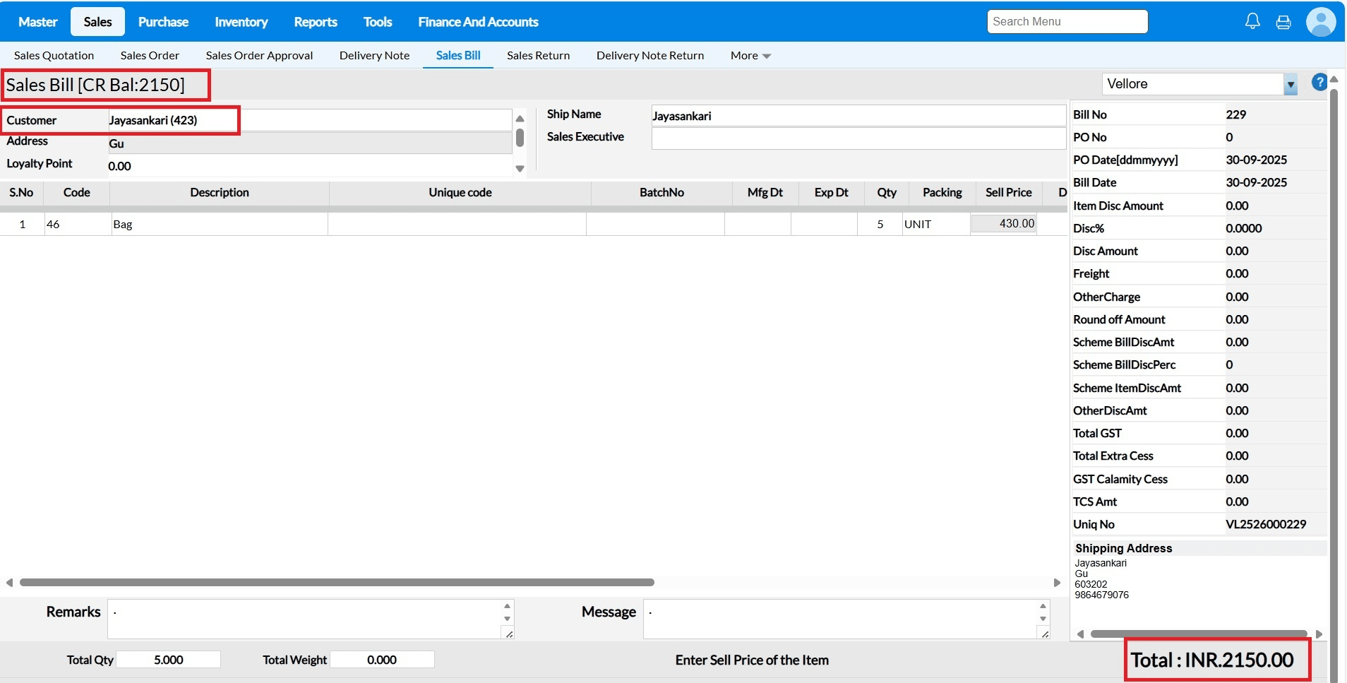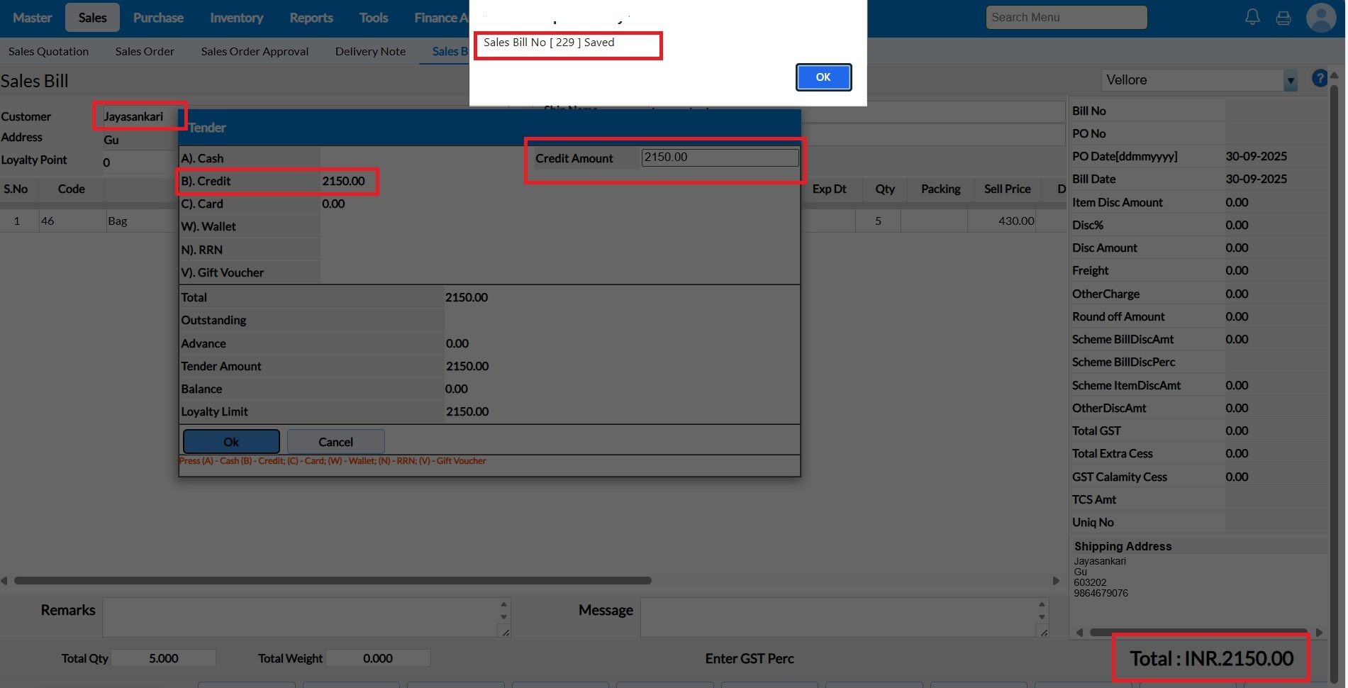 After loading the customer, the Credit Bill Amount details will be displayed.