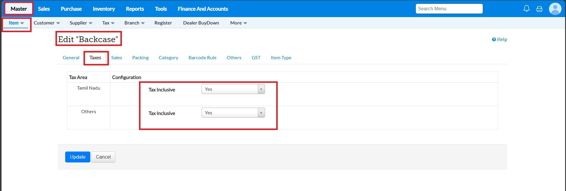 In TruePOS, GST tax amounts applied to each item in the Sales module are derived based on Item Settings and Tax Master Settings. However, the system also provides flexibility to modify tax settings during billing, depending on configuration.TruePOS supports two types of tax as: 1.Inclusive Tax 2.exclusive Tax 1. Inclusive Tax