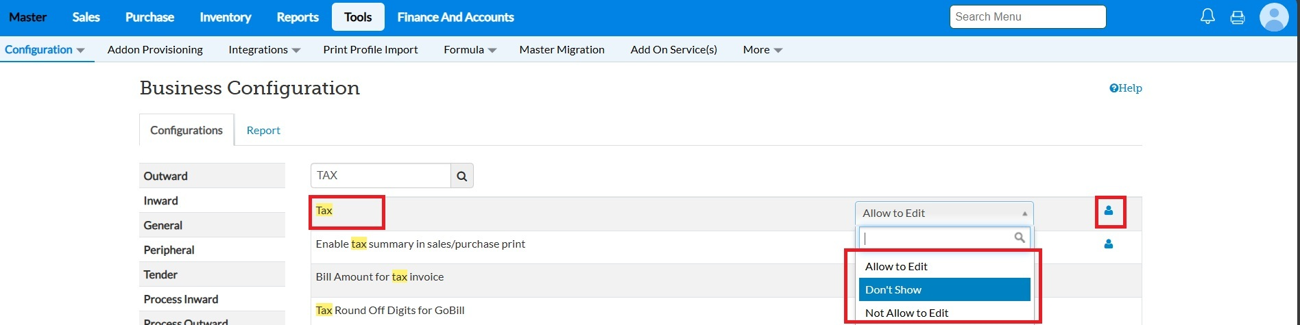 Not Allow to Edit – Shows the tax but does not allow editing.
