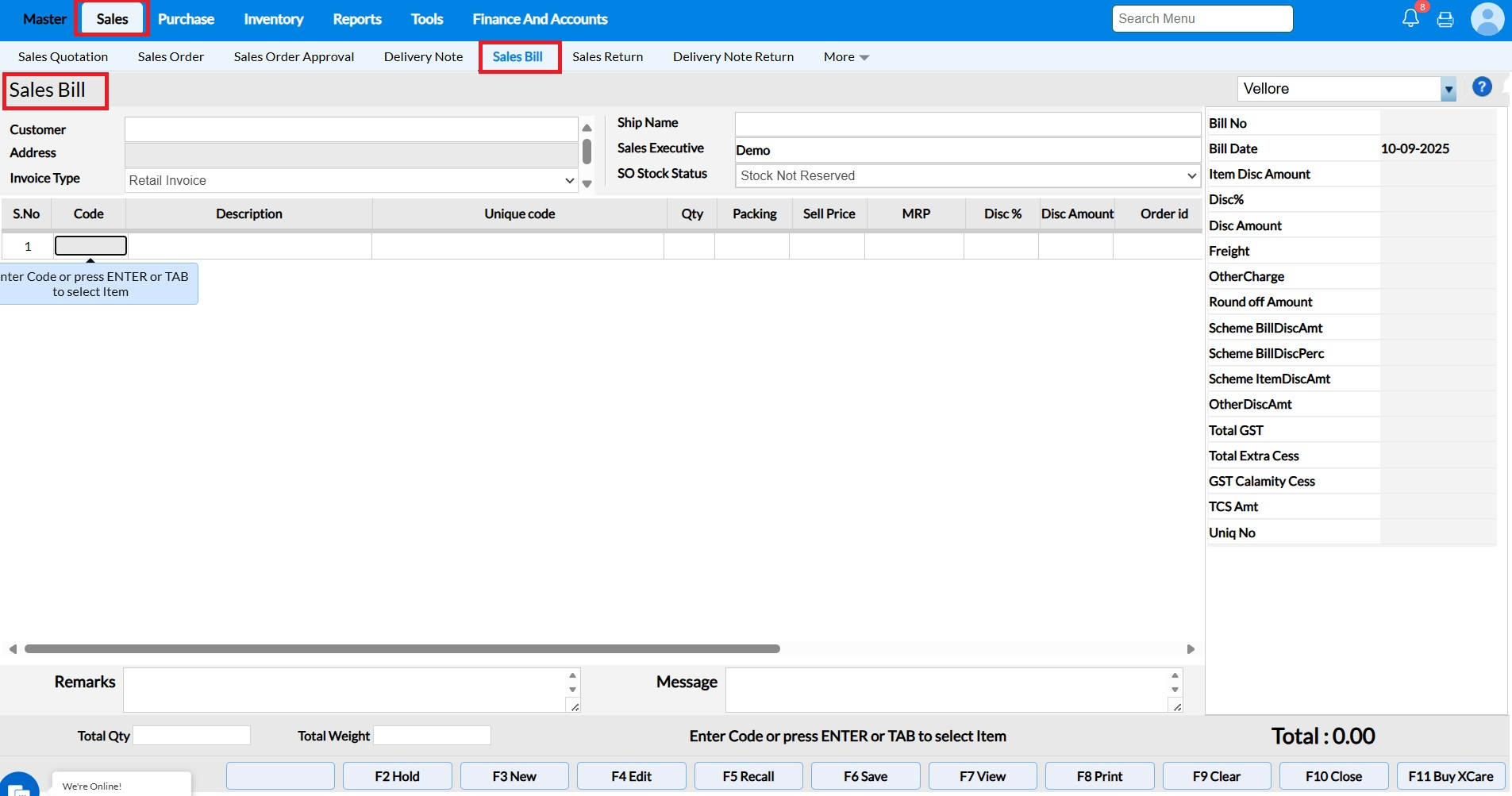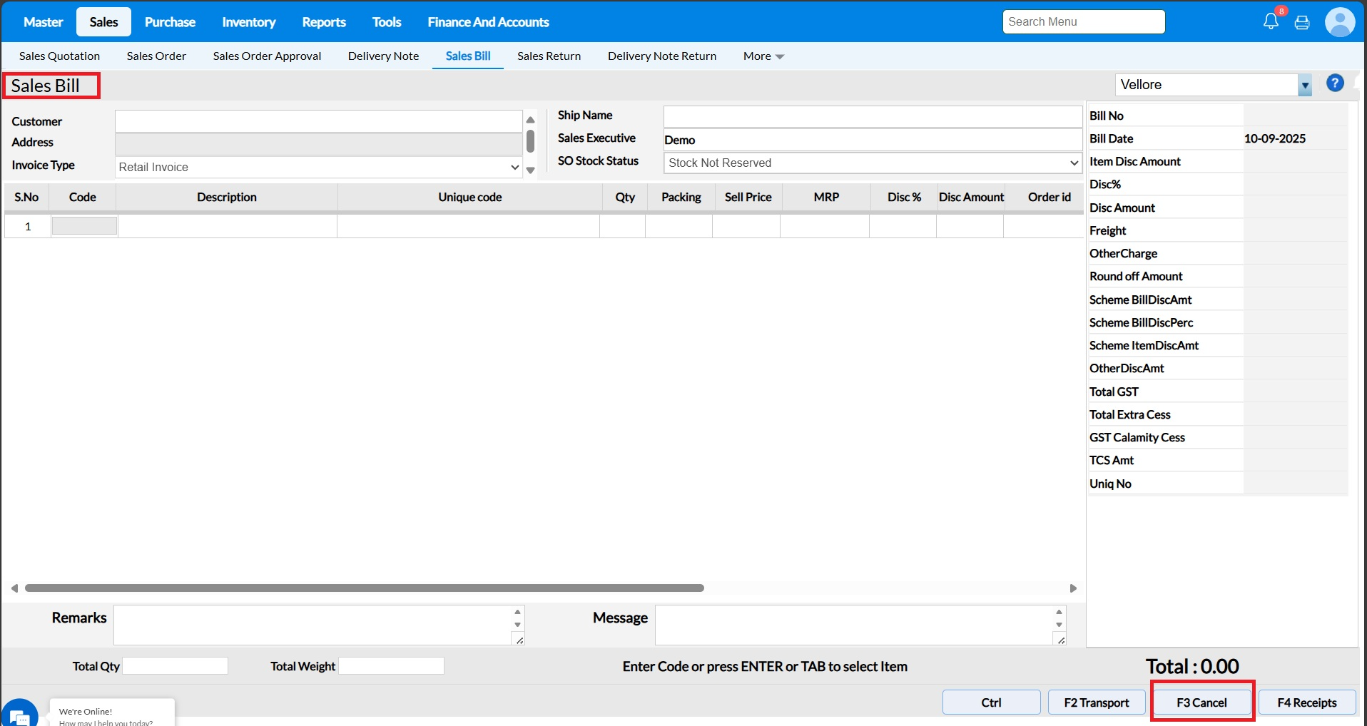 How to convert Delivery Note to sales bill ? 1. Go to Sales->Sales Bill 2.Select the 'CUSTOMER' from the LOV. 3.Press 'SHIFT+F7(LOAD SDN)' and choose the delivery note from the LOV and tap ‘ENTER’ to load it. 4.Click on SAVE, choose the payment type ...