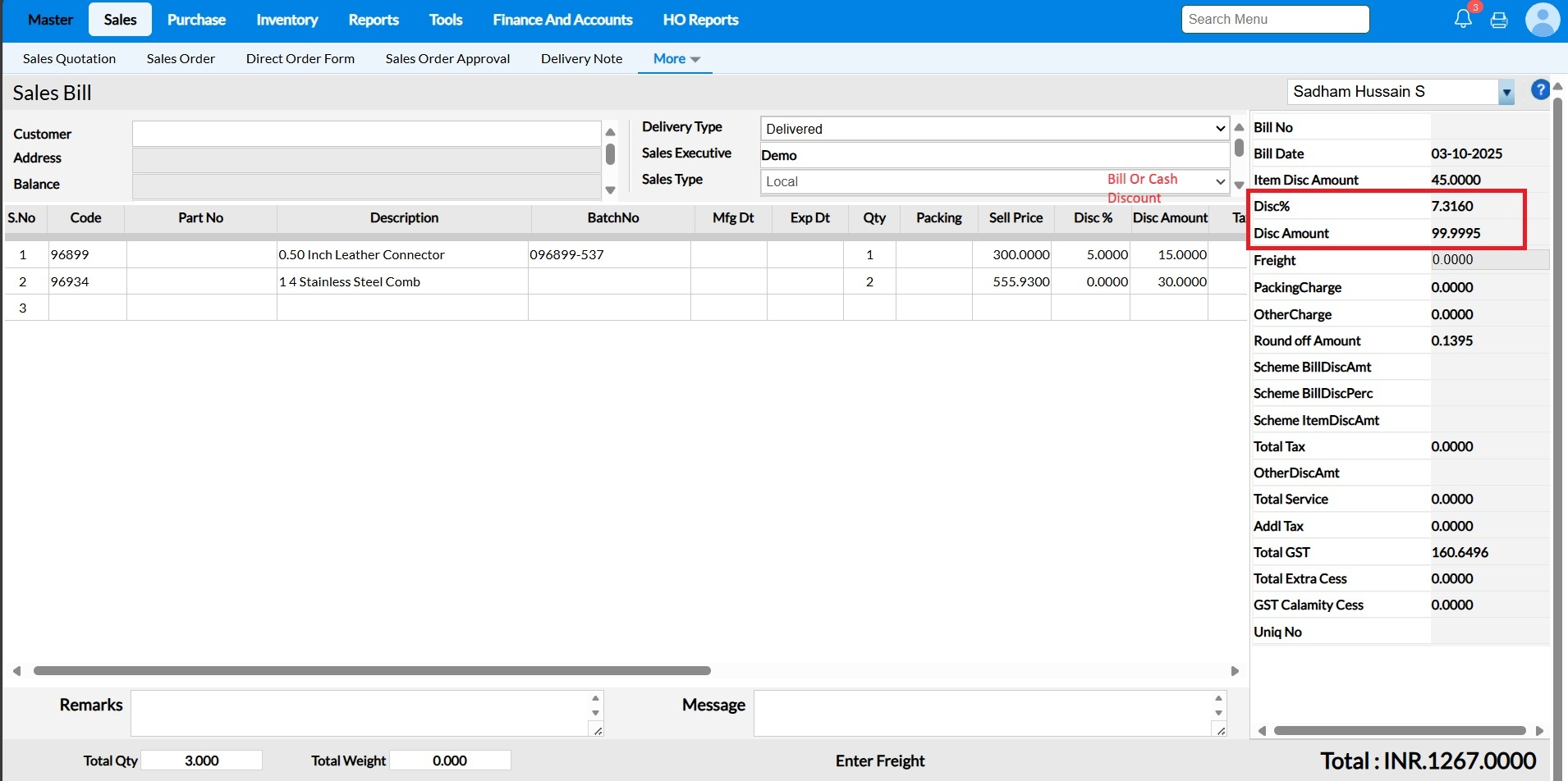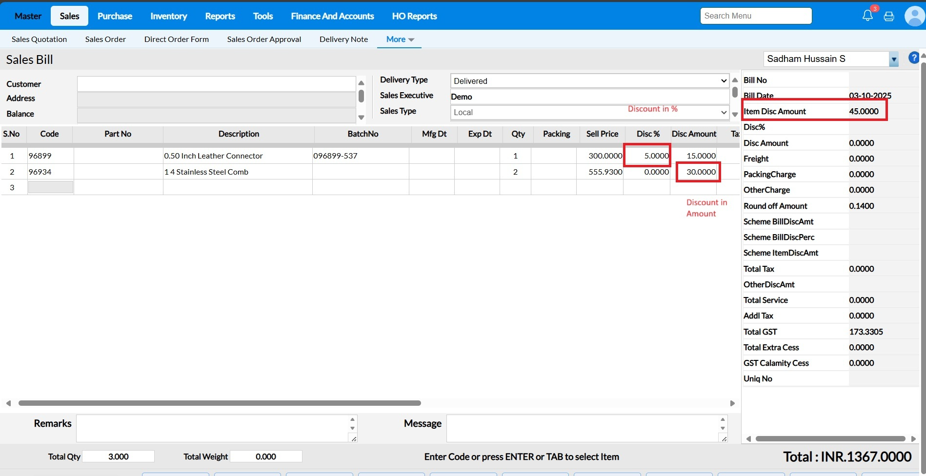 2) The bill Disc amount is getting rounded off. For example if an item rate is Rs. 1599 and if bill disc amount is provided as 99, then it is getting rounded off to 98.98?