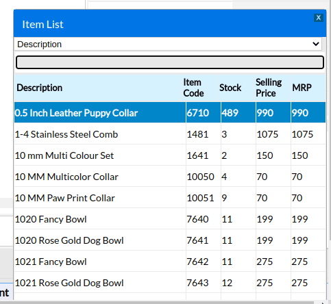 Type item code or item name or press ENTER