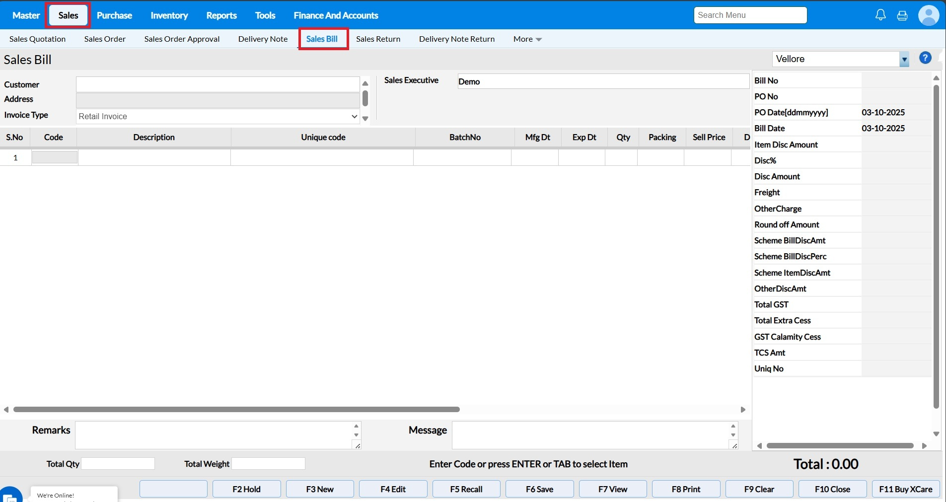 How to create a Sales Bill in RetailEasy On Cloud