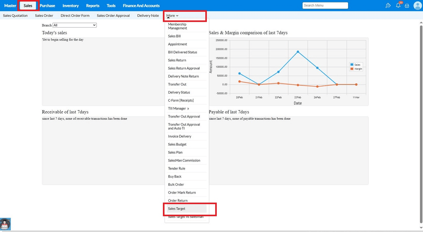 Purpose: Sales targets can be set for each outlet monthly using the previous year’s monthly sales, along with a defined growth percentage.