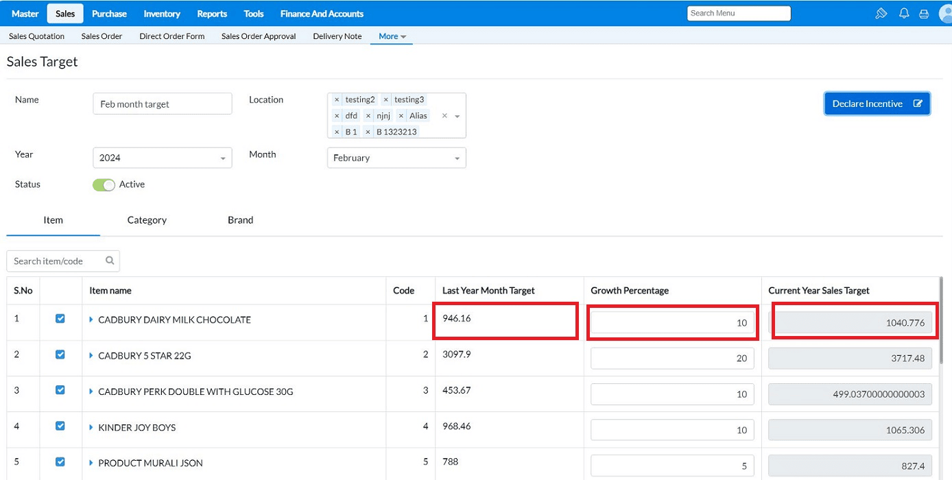 After Configuring the "Growth Percentage" for the item, It will automatically calculates the Current year sales target. Kindly refer to the Screenshot.