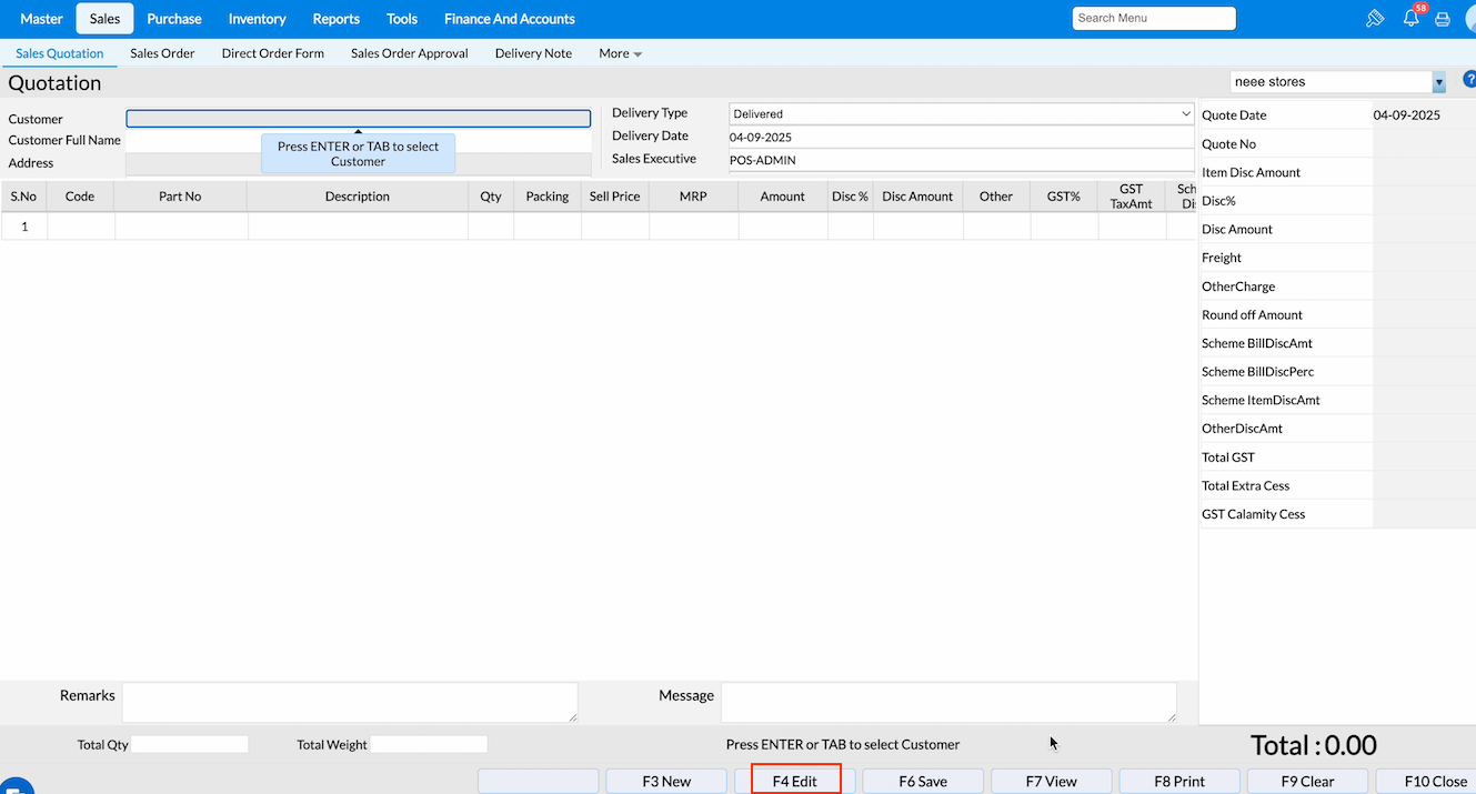How to create a Sales Quotation in RetailEasy On Cloud