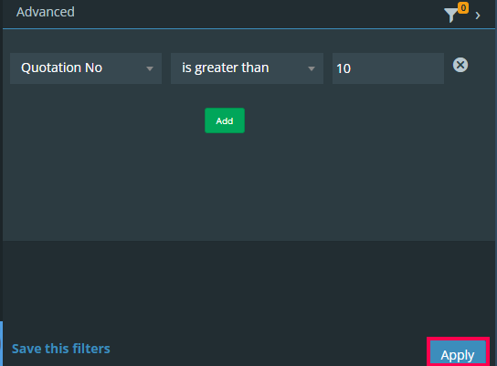 Step 3: In the Sales Quotation Summary screen, apply the filters by clicking on the Filter icon on the left panel