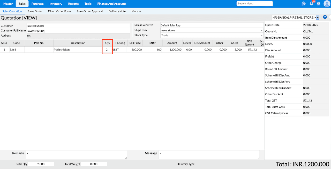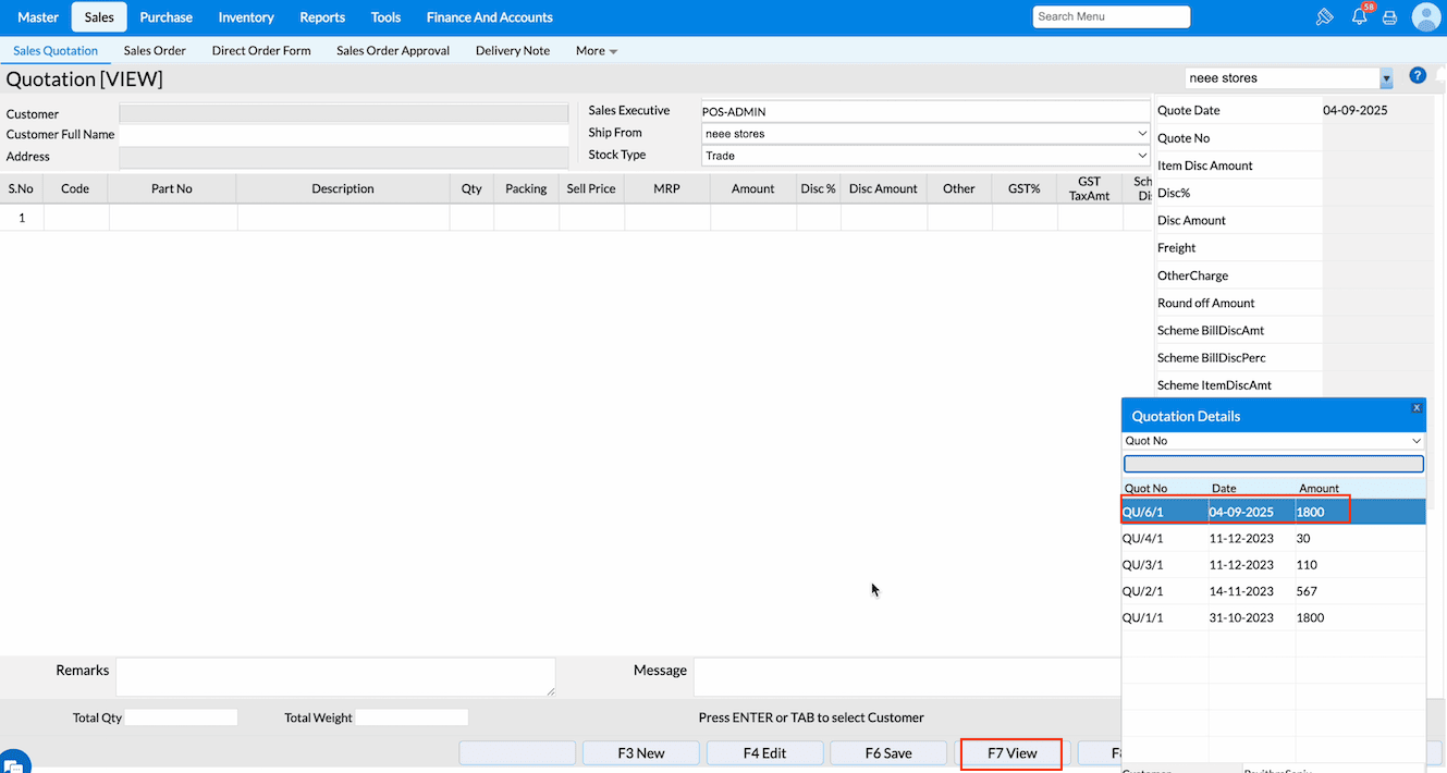 • How to View a Sales Quotation in RetailEasy on-cloud?