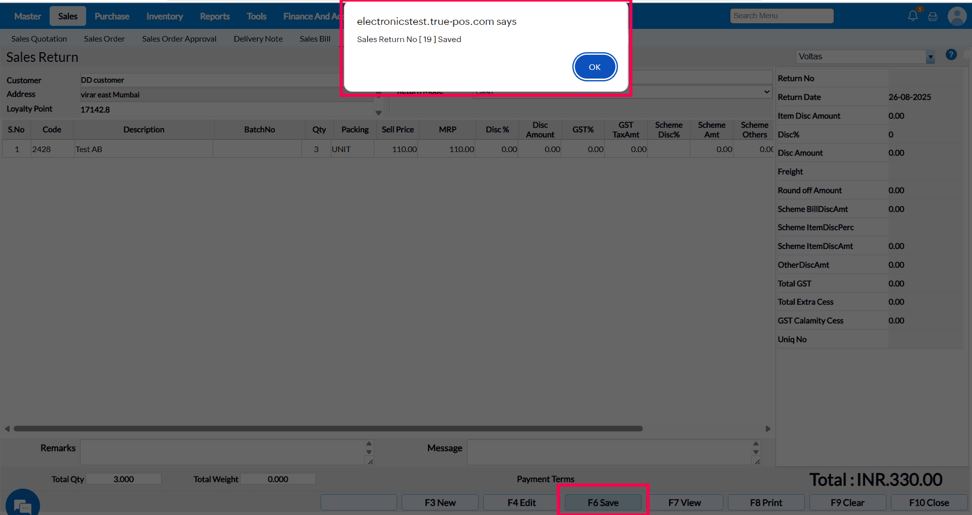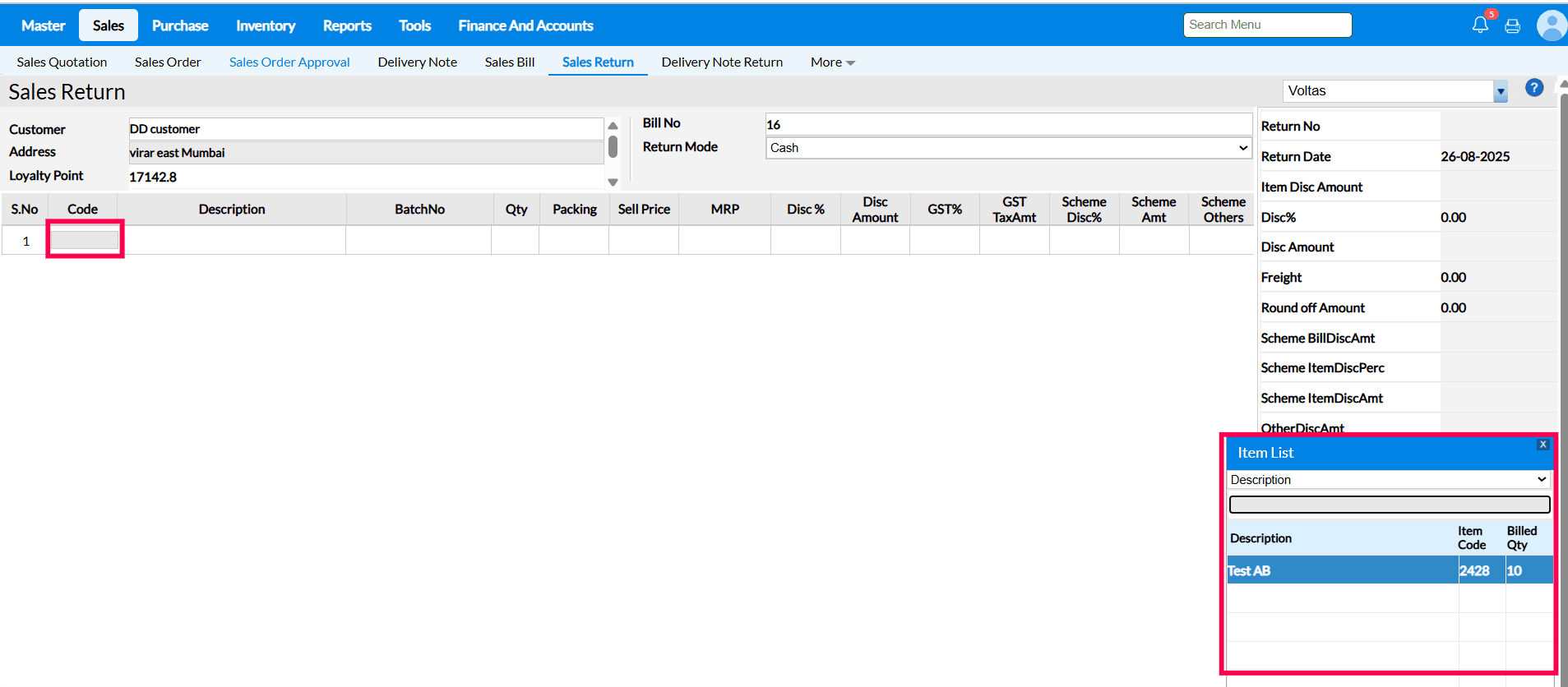 While doing sale return, after loading the customer name, no items are listing in LOV?