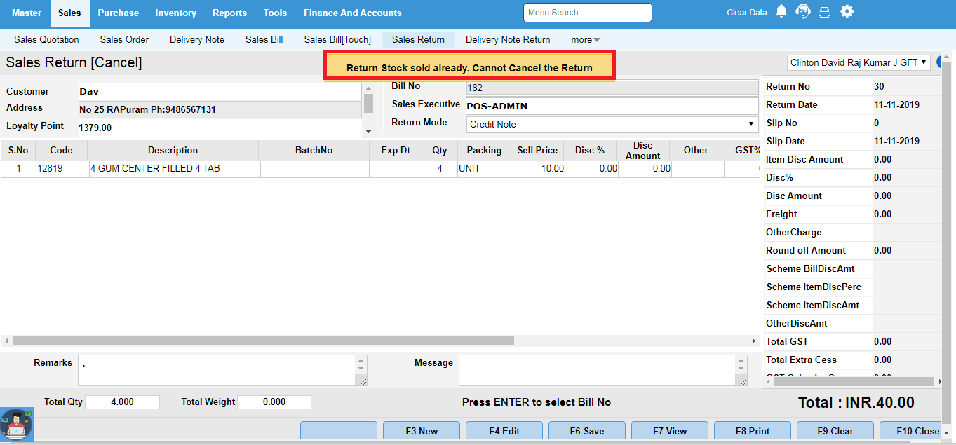 → 1. If the sale return is already cancelled, it will not load in cancel LOV.