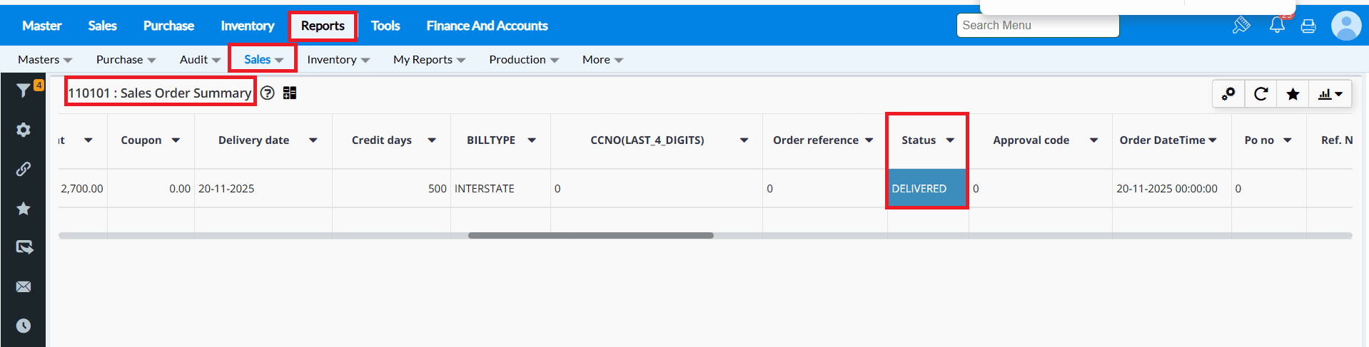 Ans:A sales order will be displayed only if it has been approved by the admin. If it is still in pending status, it will not appear in the Sales Bill when you try to convert it into a sales bill using Load SO function key.