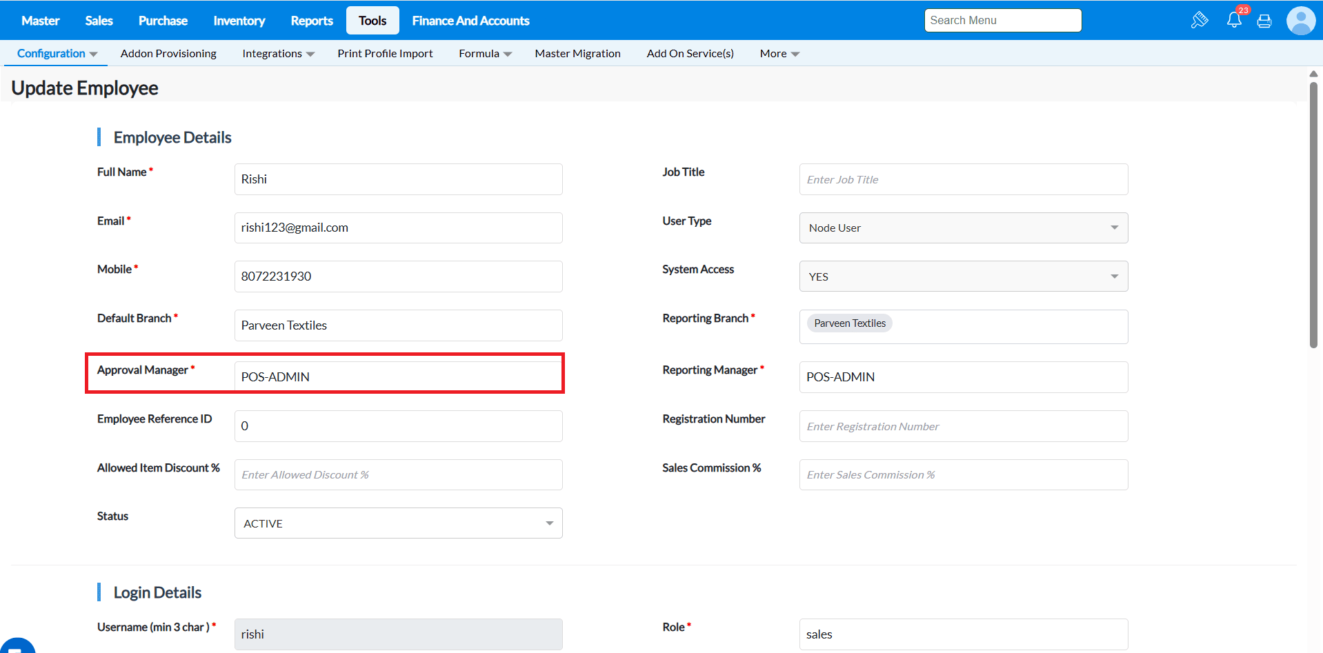 2.During user/employee creation, map the Approval Manager for each user in the Employee Master under Security Configuration.Note: If the user already exists, you can modify and update the approval manager as needed.