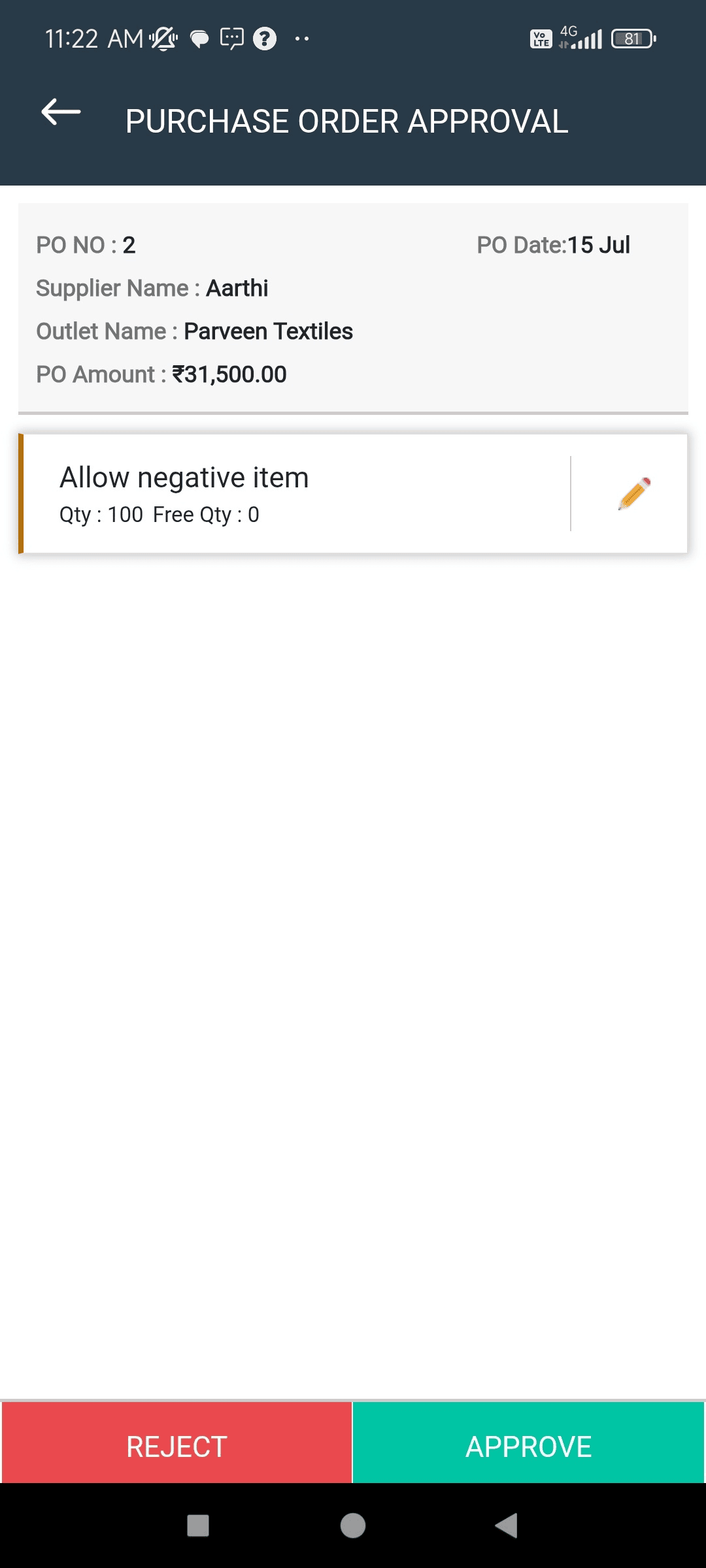 2.The approval details screen will display the relevant information, such as purchase order number, supplier details, item quantities, and other relevant data.