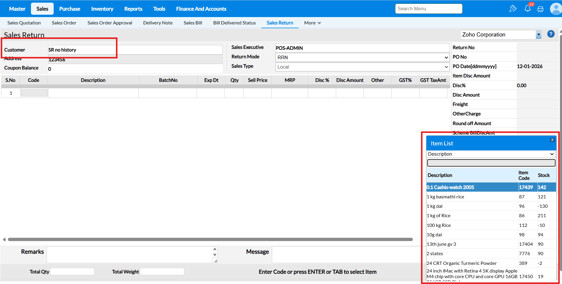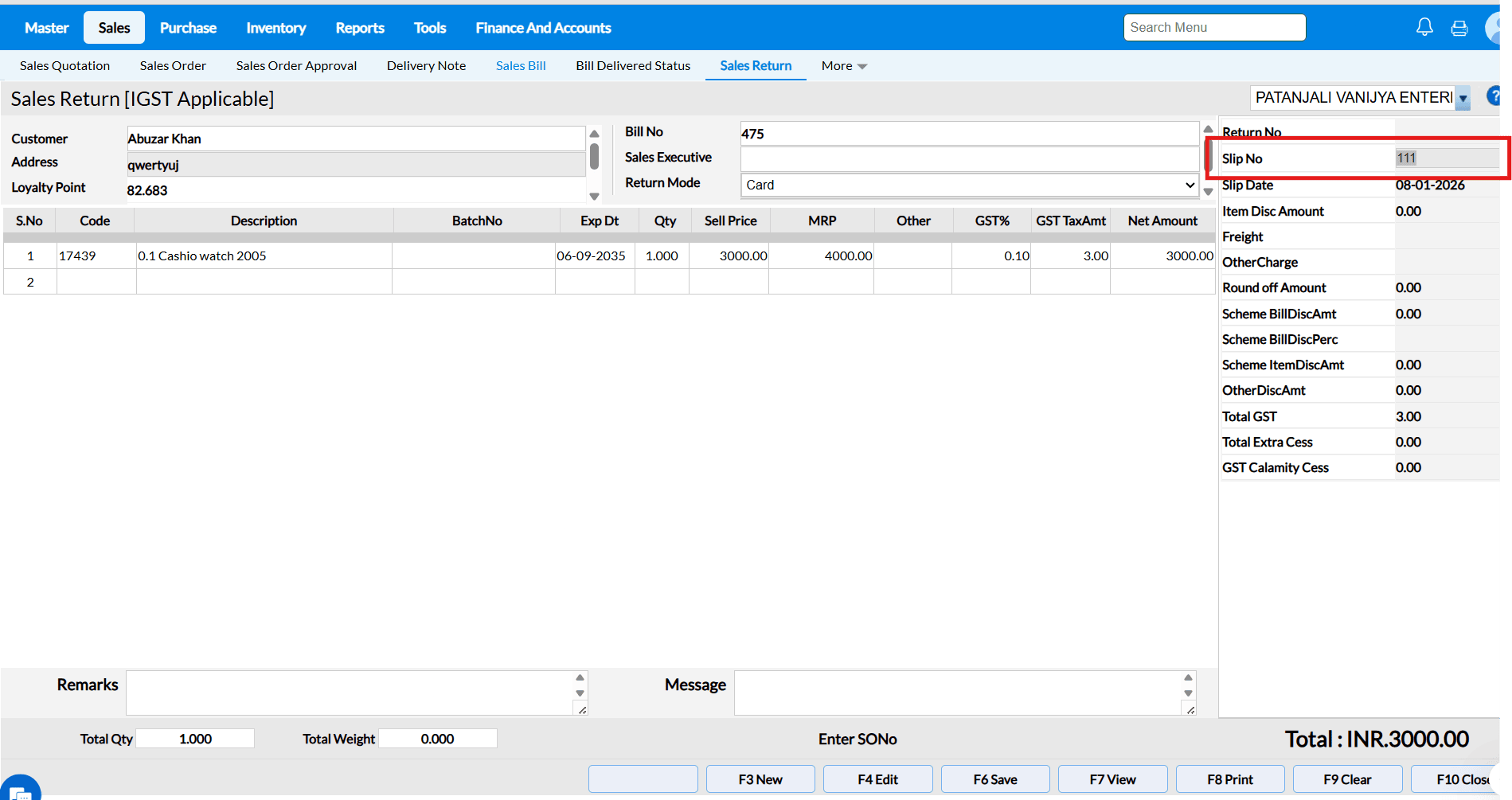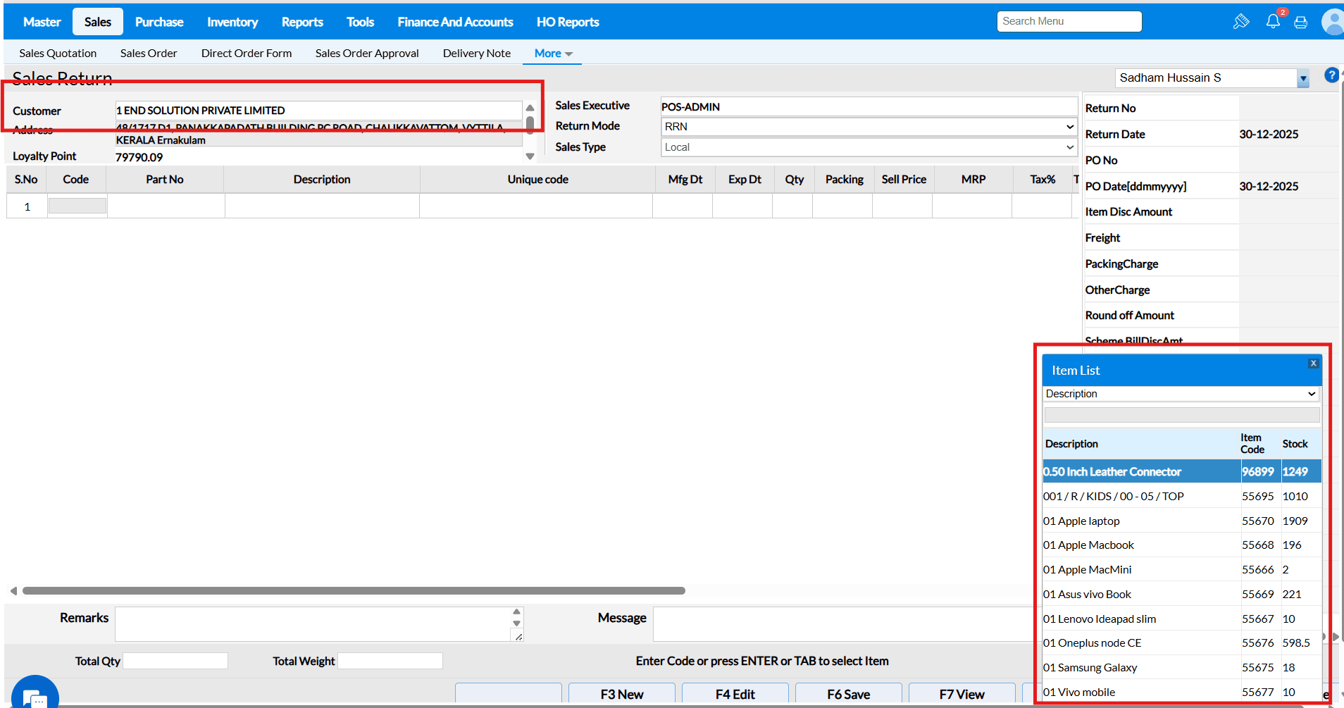 FAQ for "Sale Return Based on Bill No" :