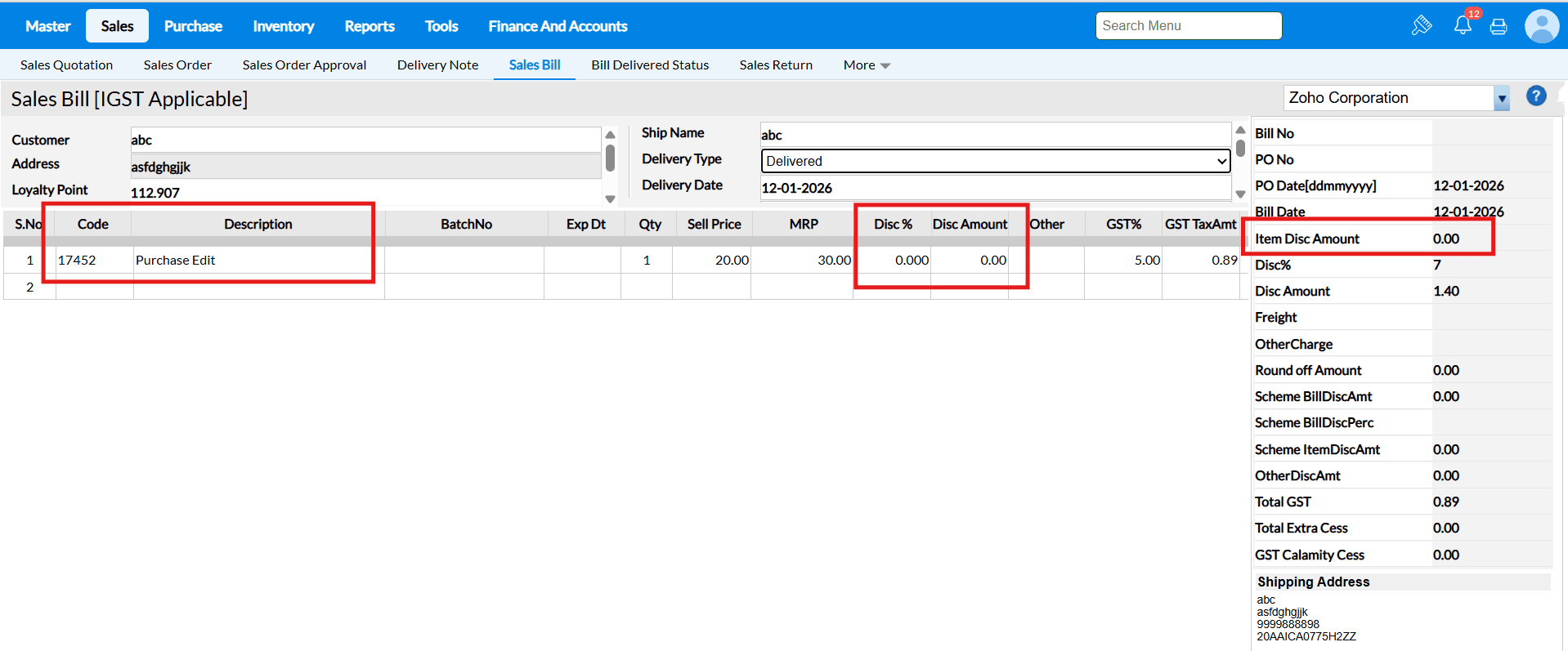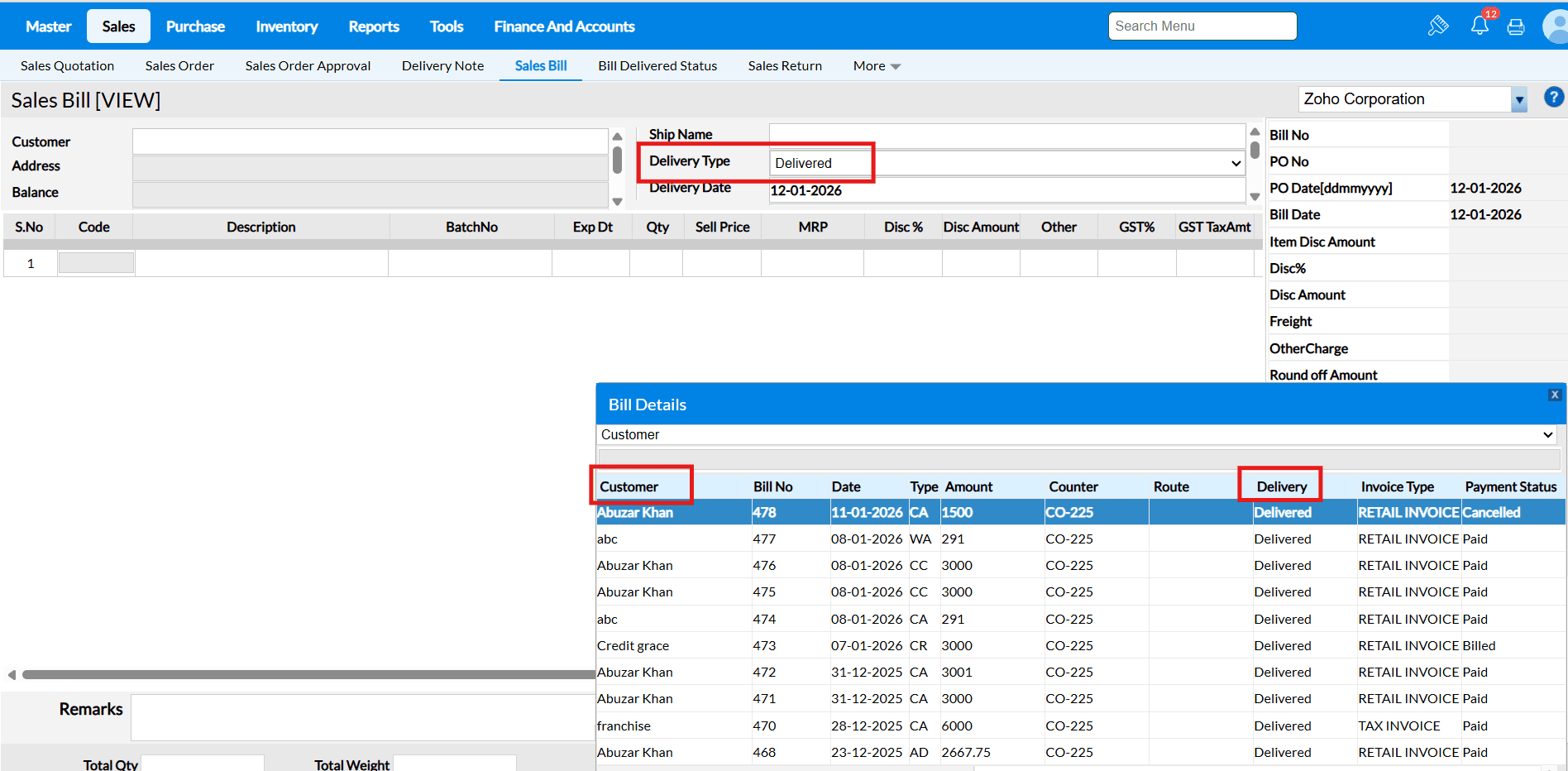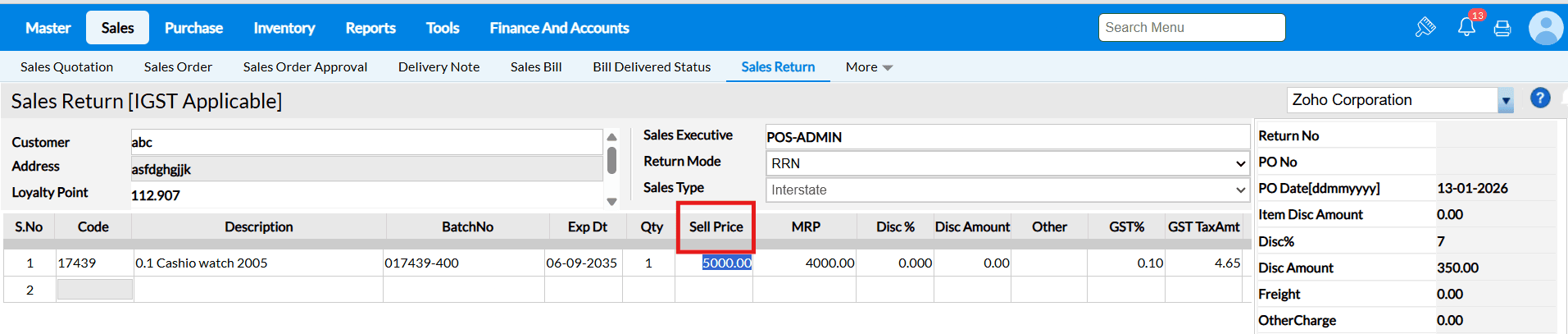 FAQ for "Sale Return Based on Bill No" :