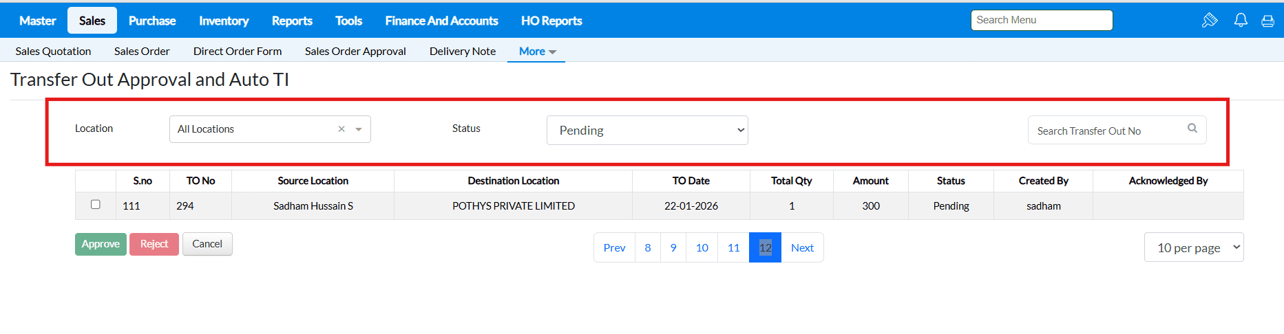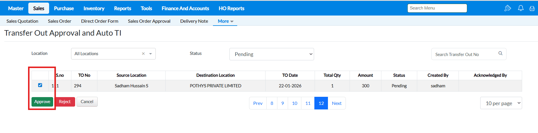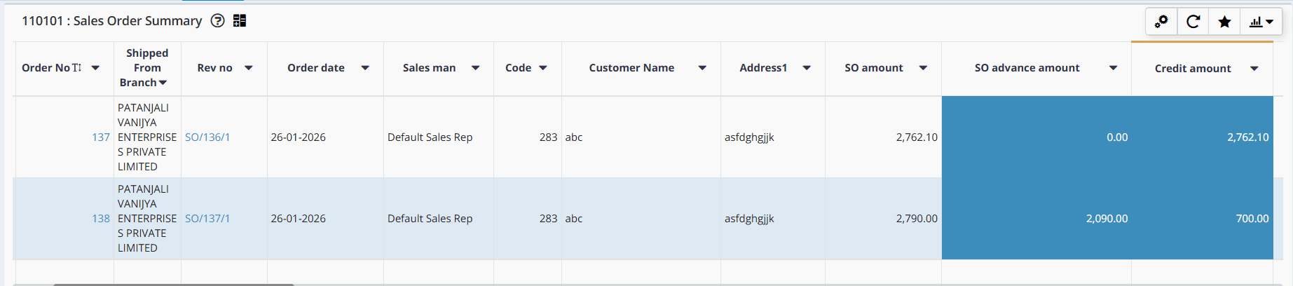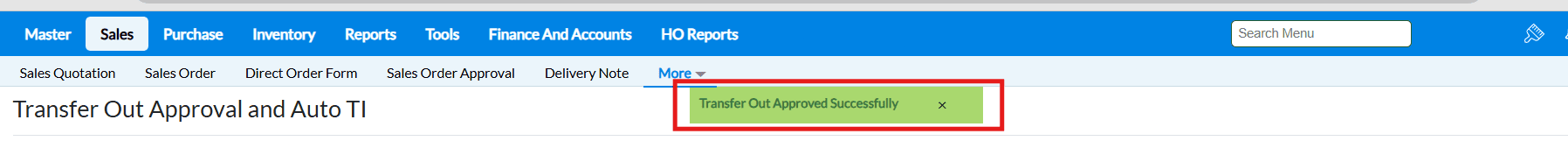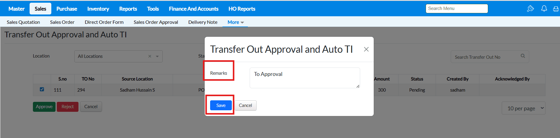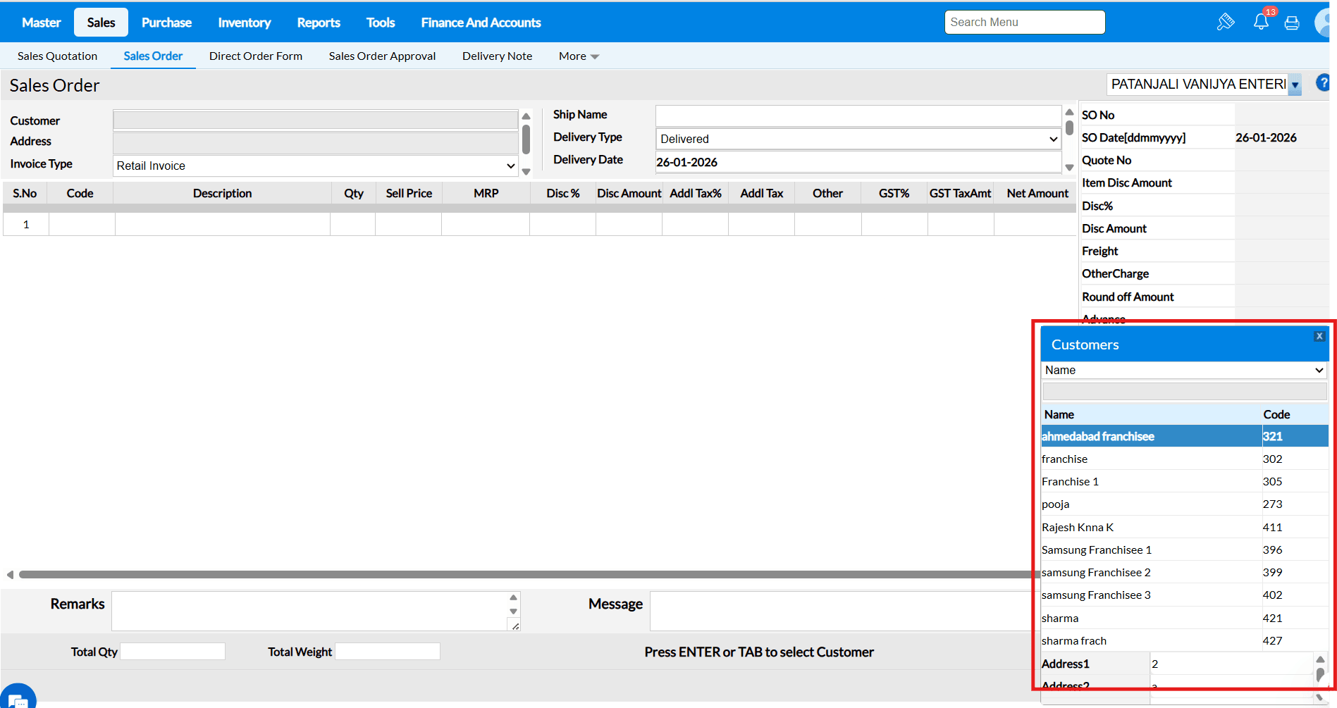Sales Order screen