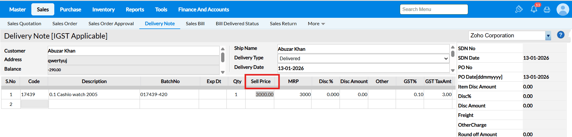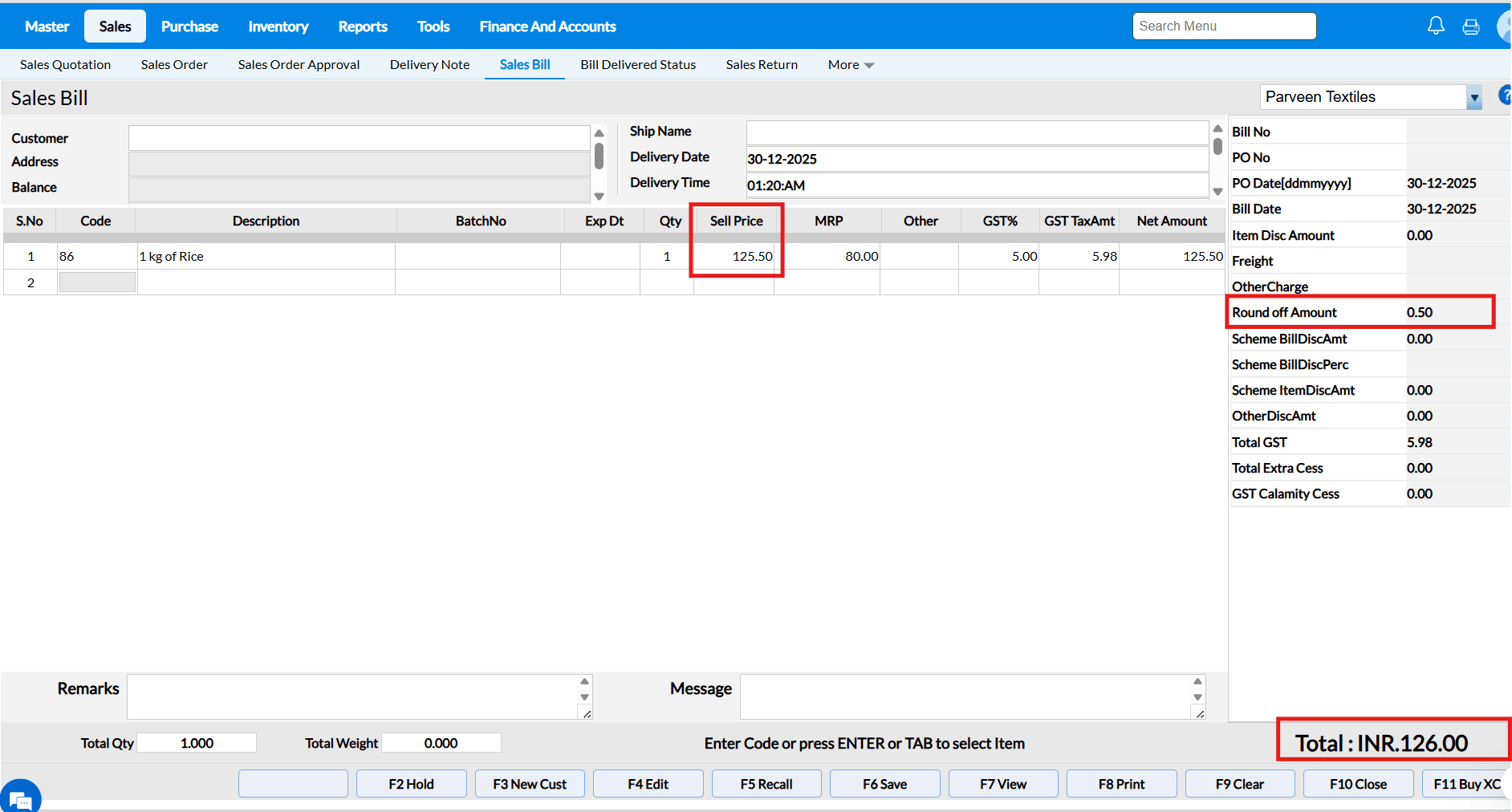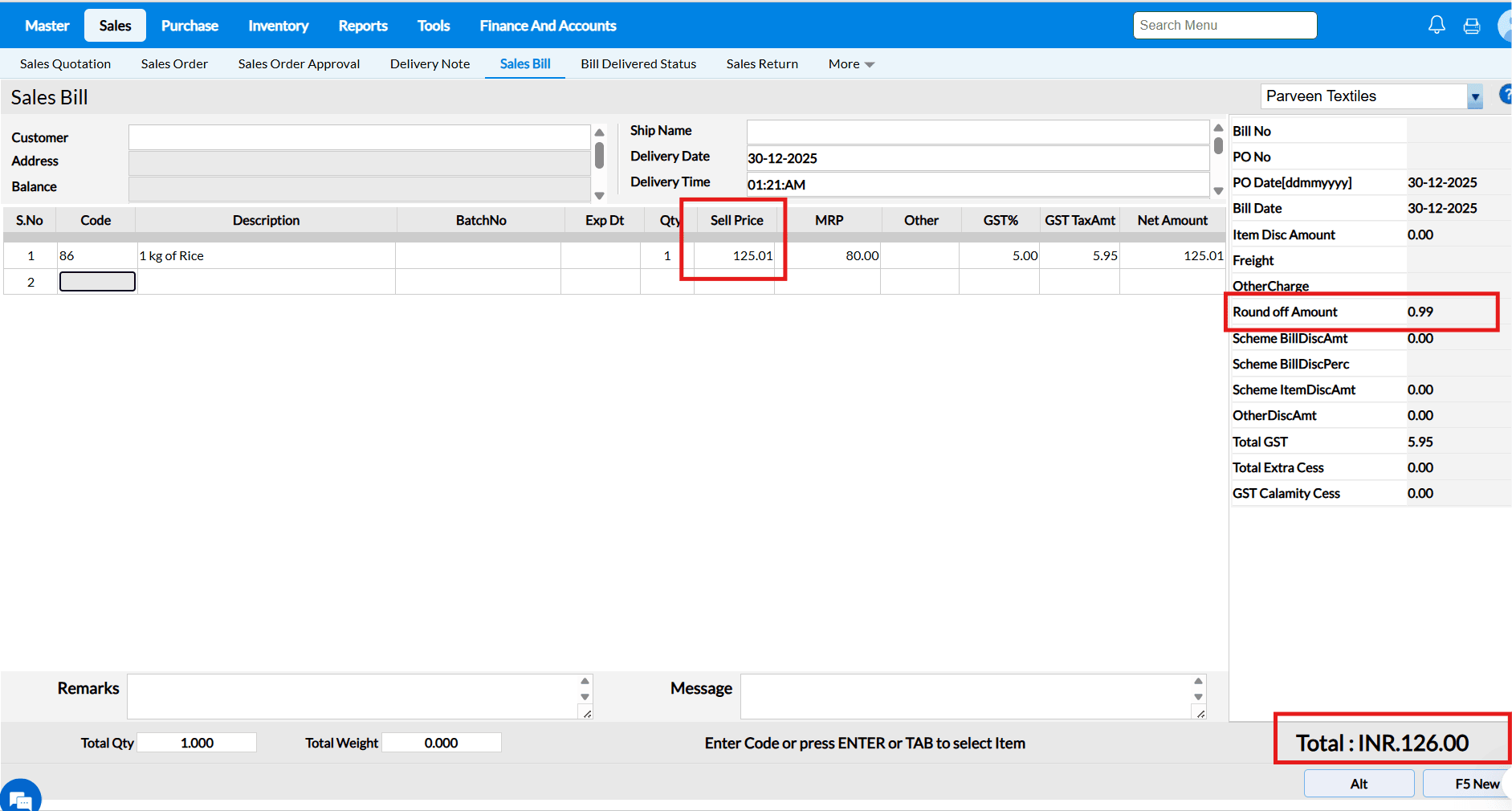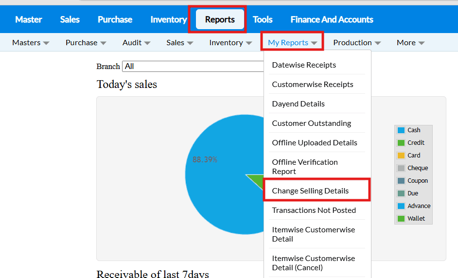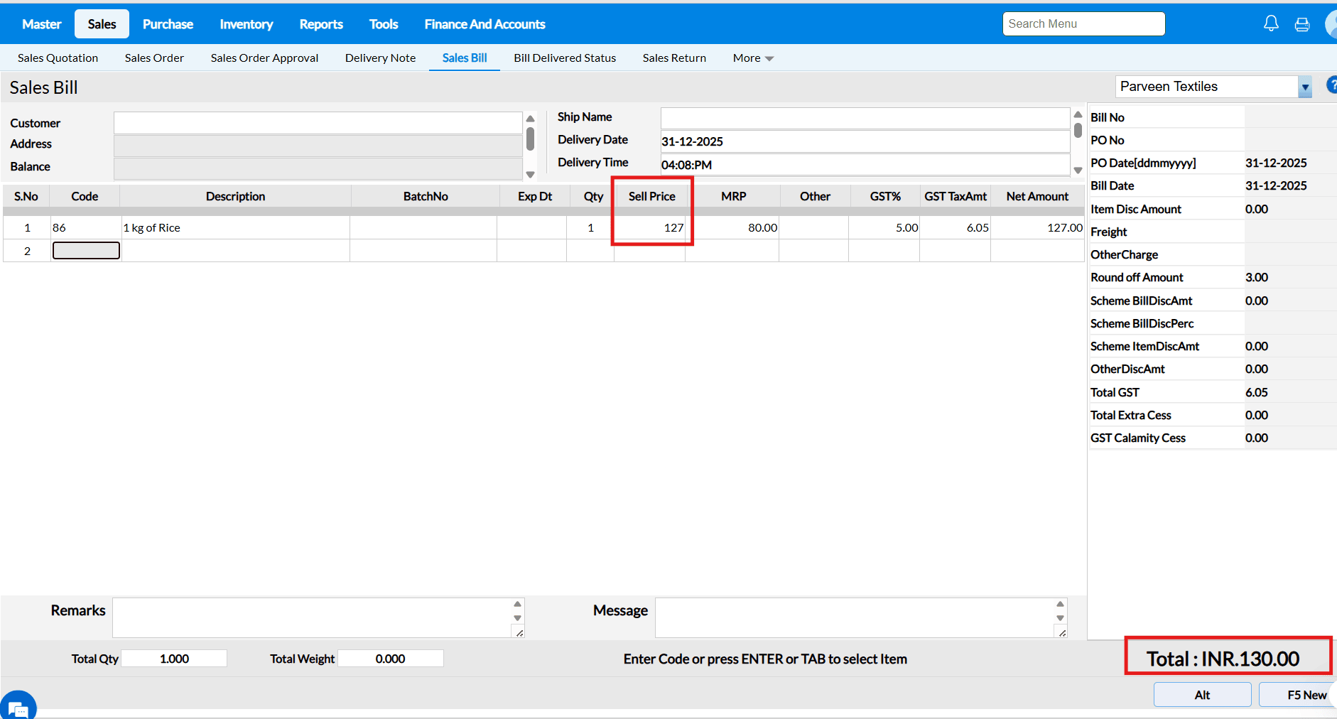 Example : The costs of the goods in supermarkets and grocery stores are constantly fluctuating. You may load the items and alter the selling price and MRP in a matter of seconds using the Change Selling interface.