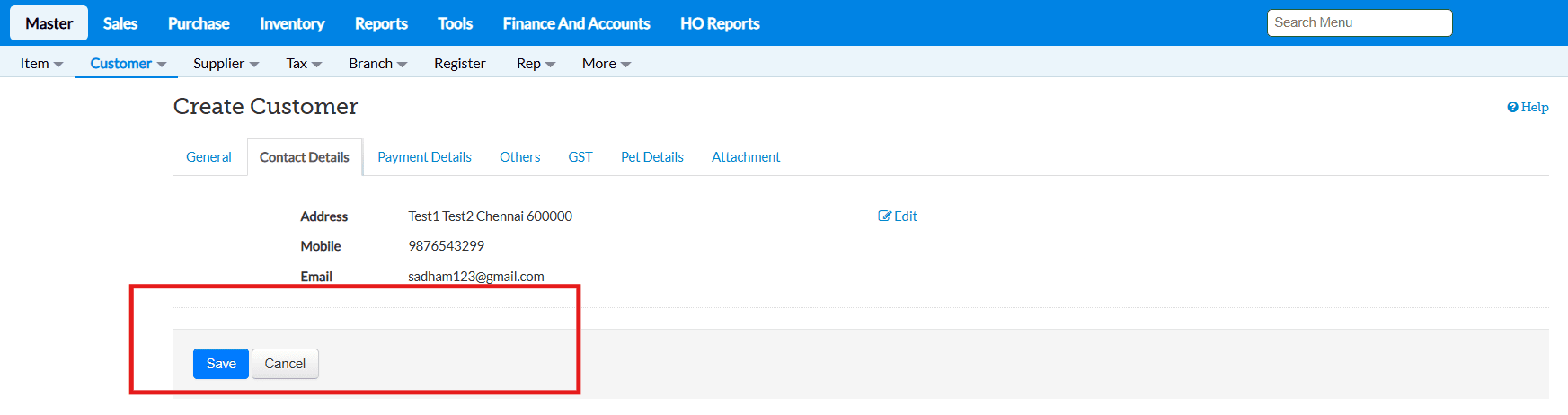 Save the customer master.