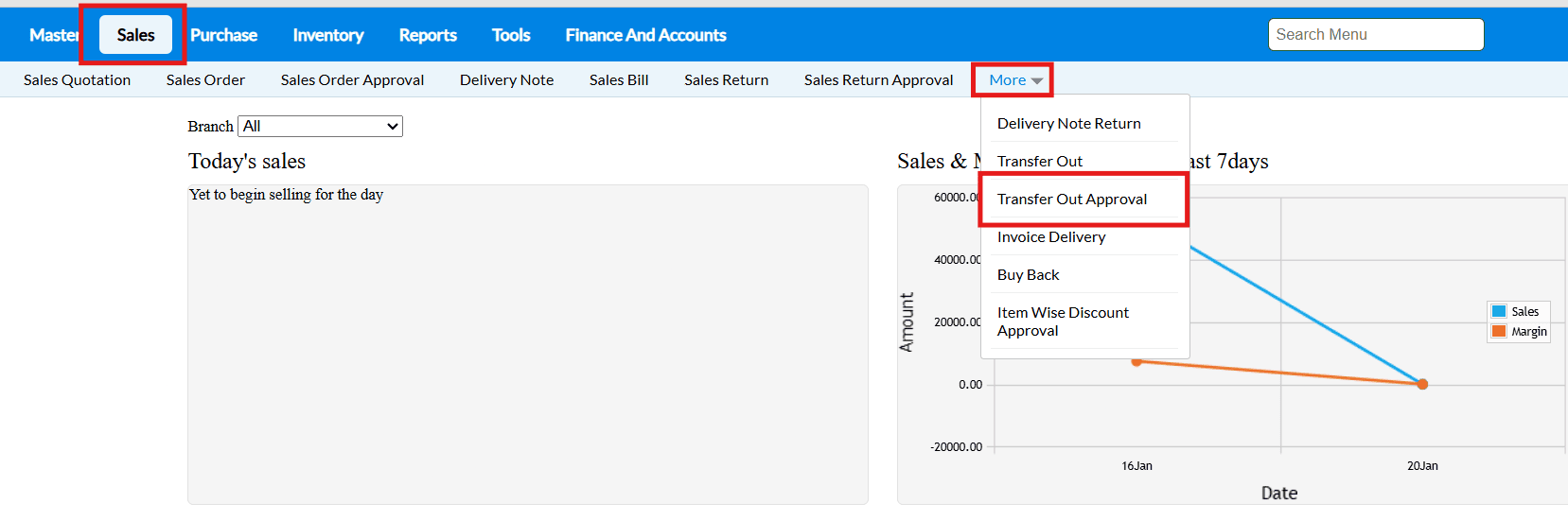 1. Navigate to 'Sales' from Dashboard