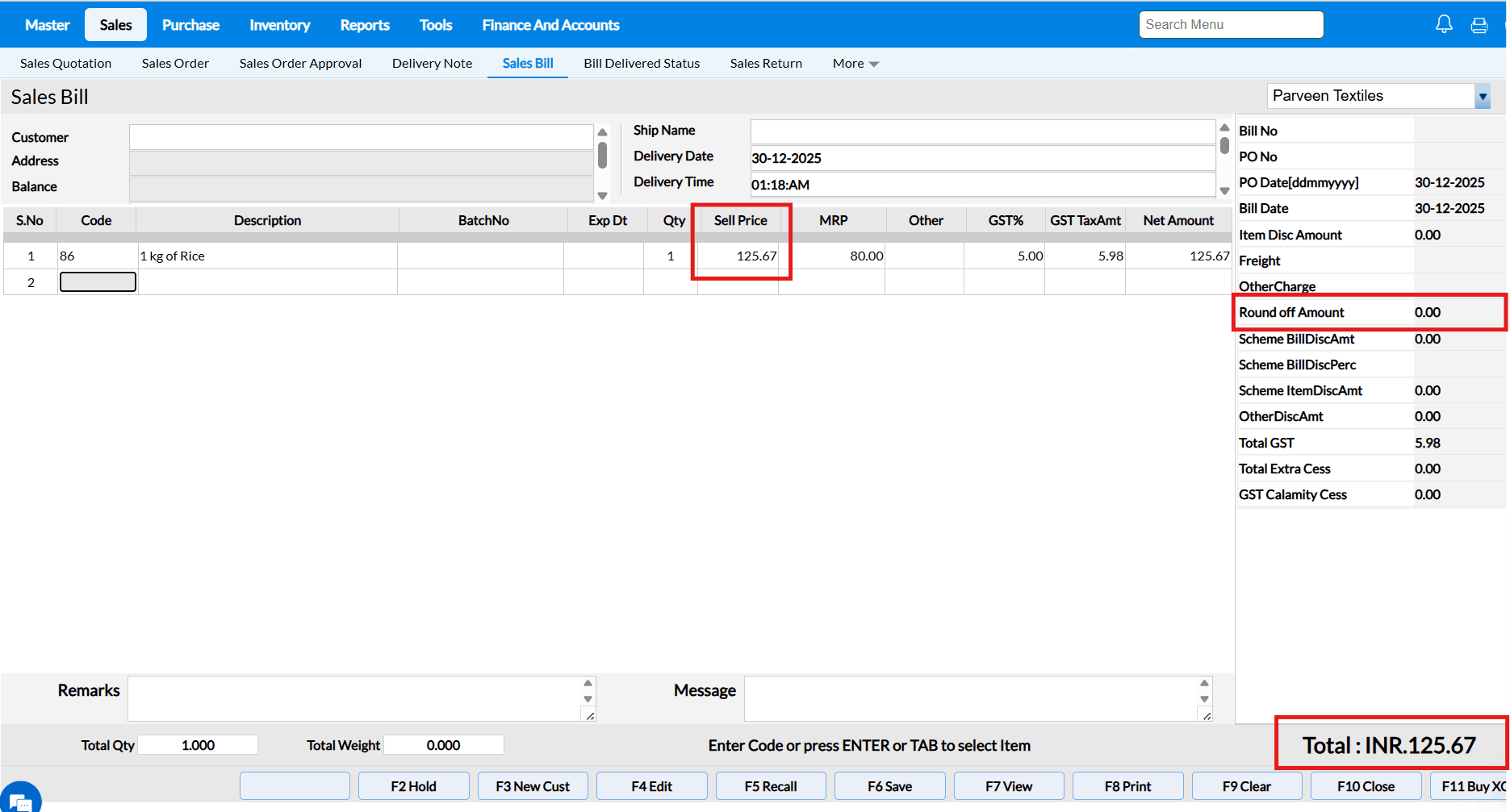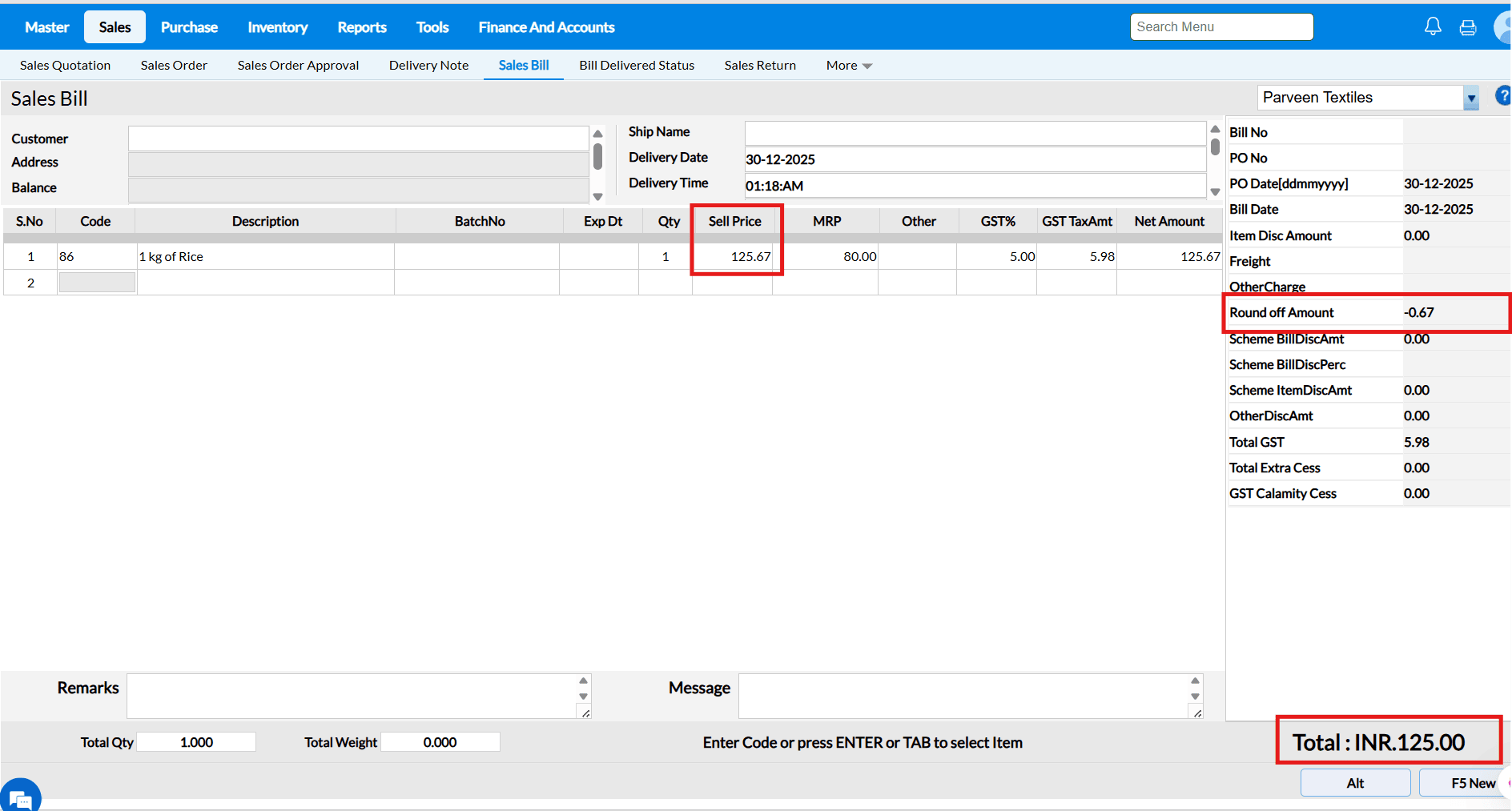 Bill Amount : ₹125.67