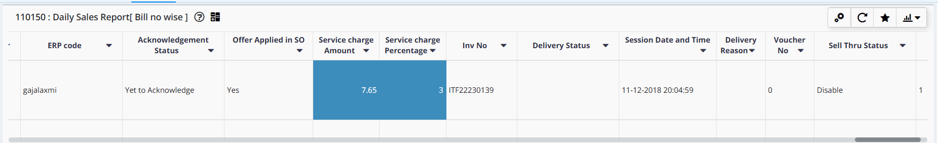 → Go to 'Reports → Sales → Sales → Daily Sales Report [Bill no wise]' → Refer the column 'Service charge Percentage and Service charge Amount'.