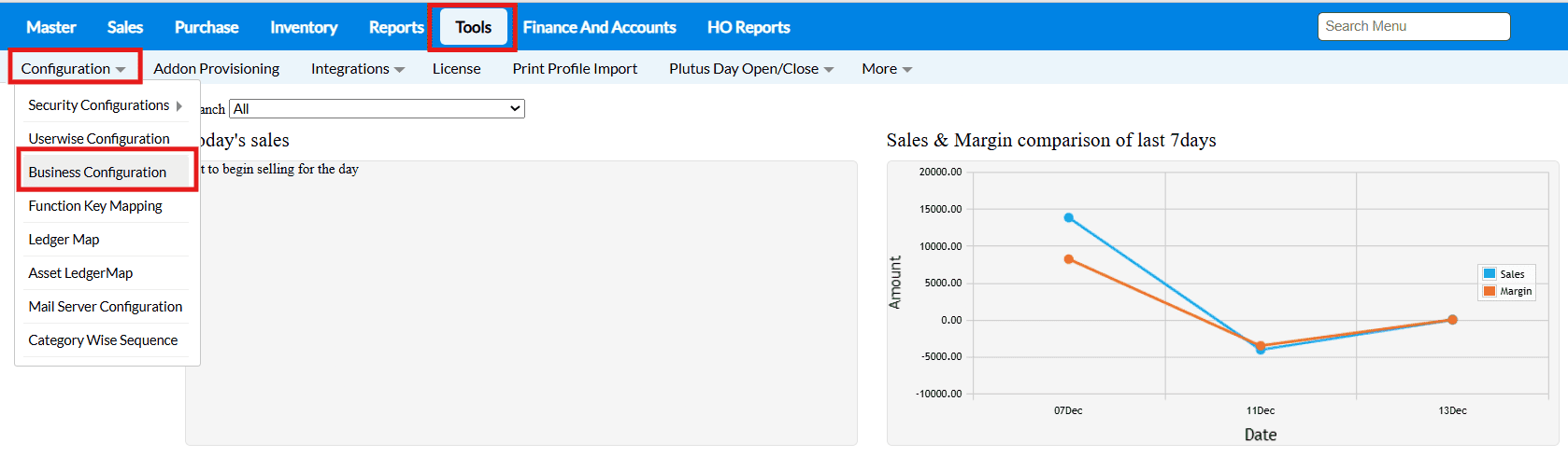 1. Navigate to Tools → Configuration → Business Configuration