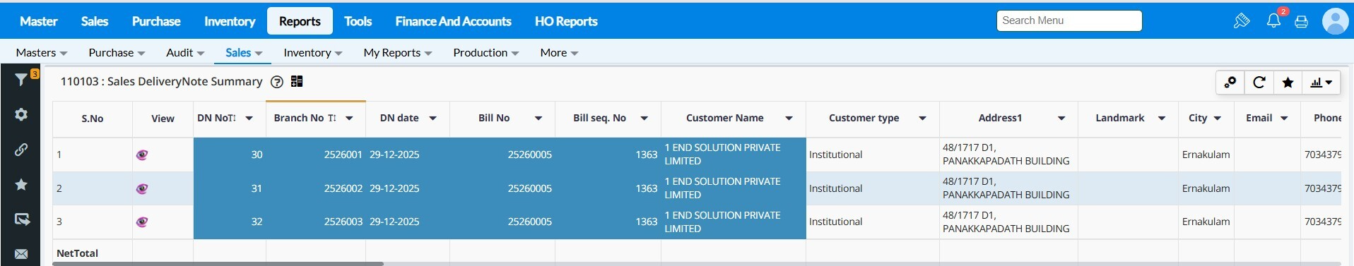 5. You can verify the DN number and Sales bill number in which it has been converted in 'Sales DeliveryNote Summary' report.