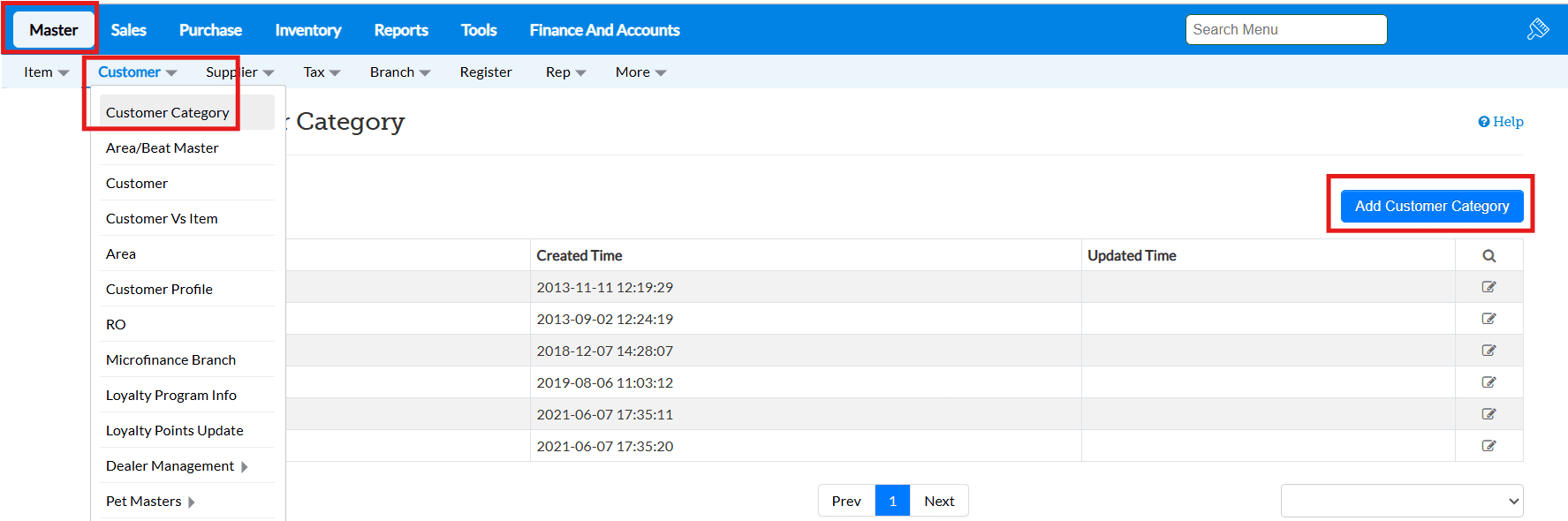 → Also you can create new customer category under the menu 'Master → Customer → Customer Category → Add Customer Category'
