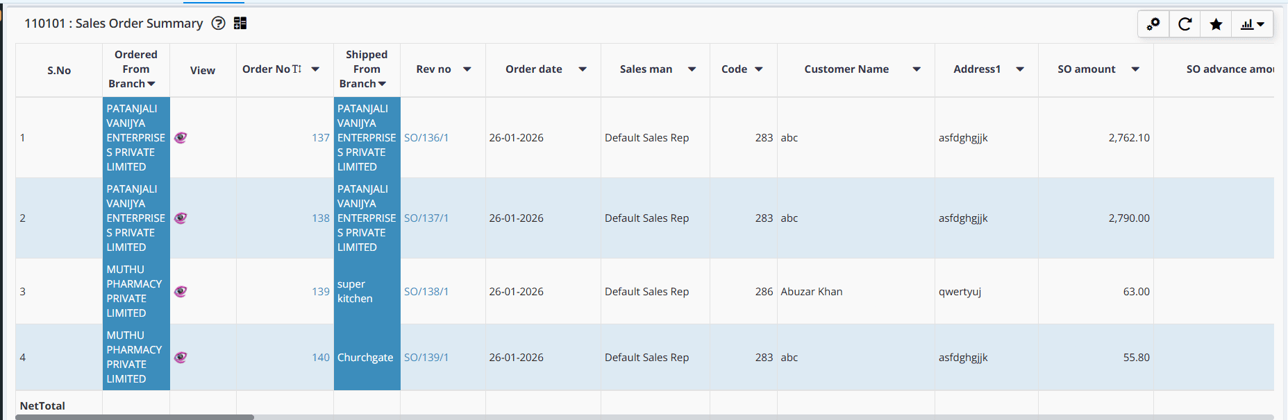 → If the 'Show Bill From Branch in Sales Order and Quotation' configuration is enabled,