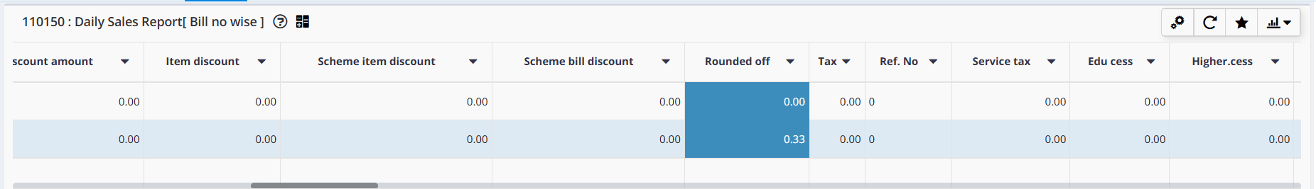 → You can refer the same in 'Daily Sales Report [Bill no wise]' for sales transactions in the column of 'Round off'.
