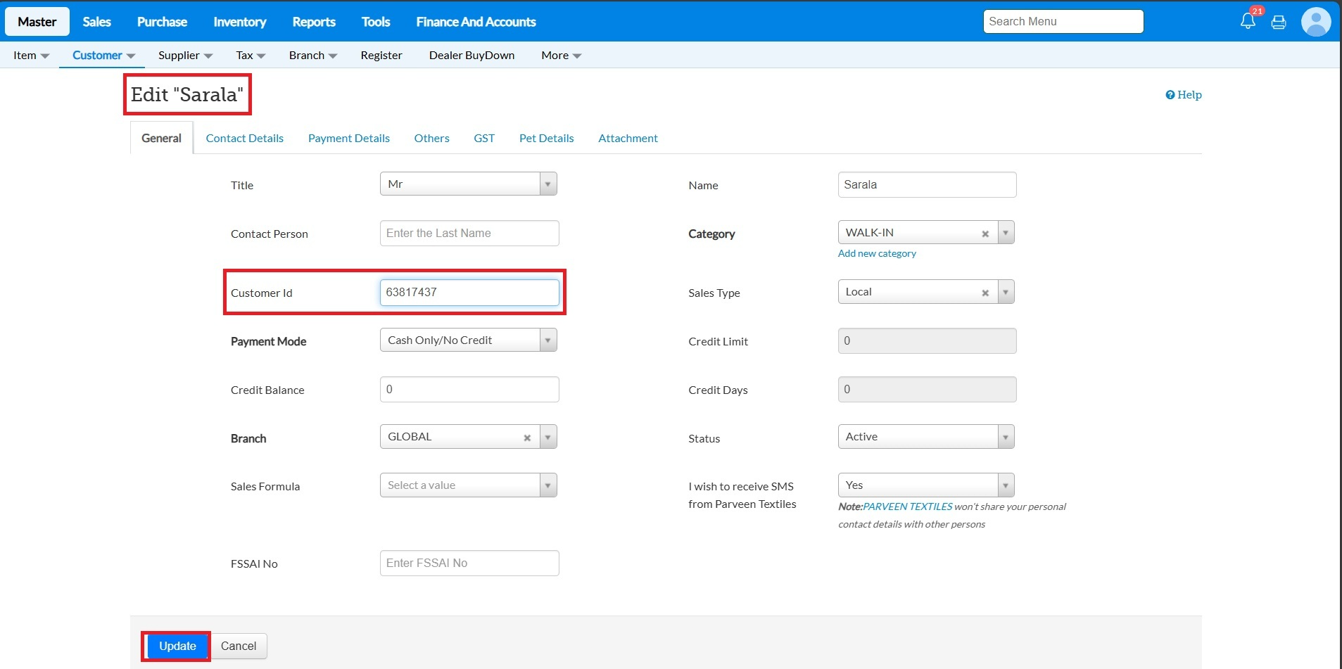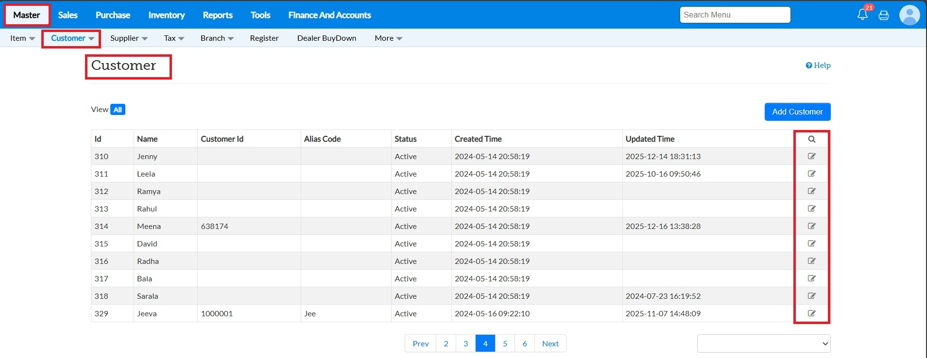 4.Go to Master->Customer->Customer .Click on Edit icon