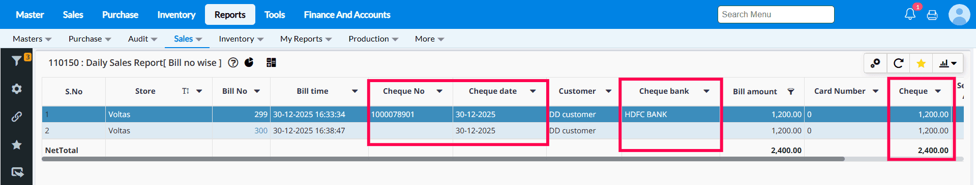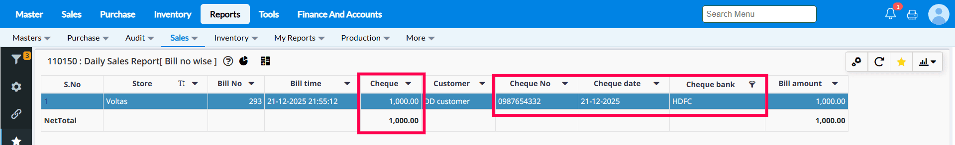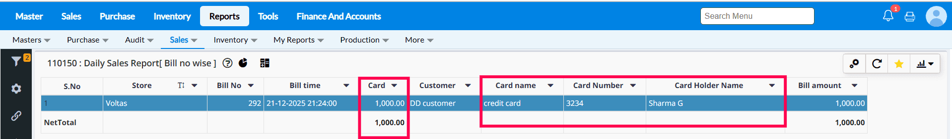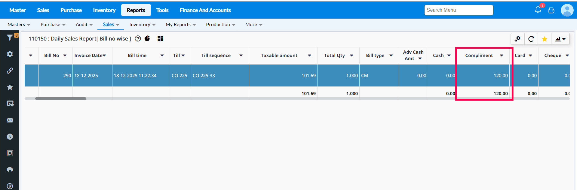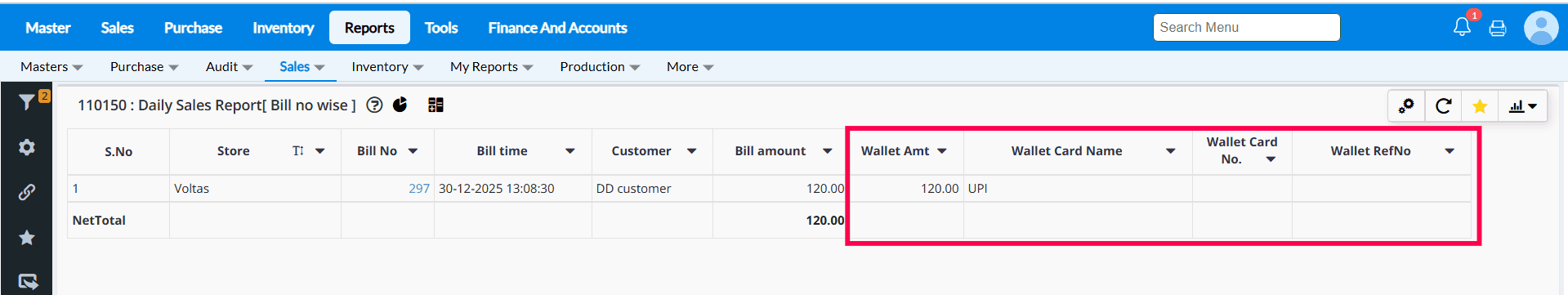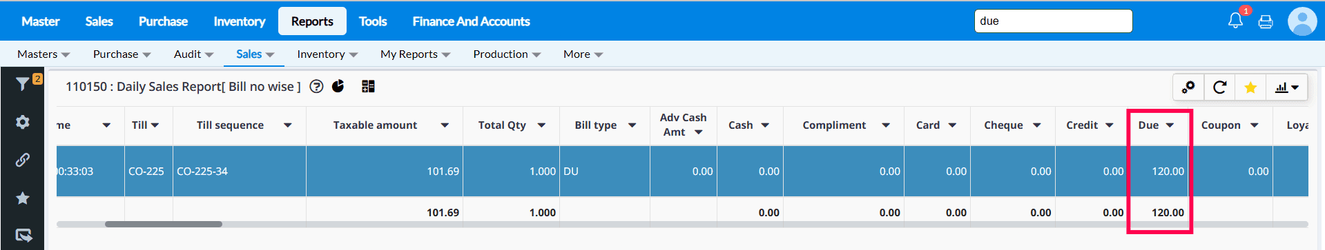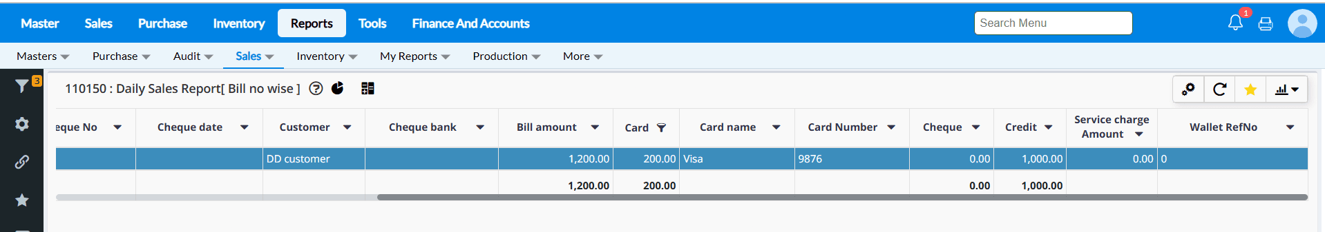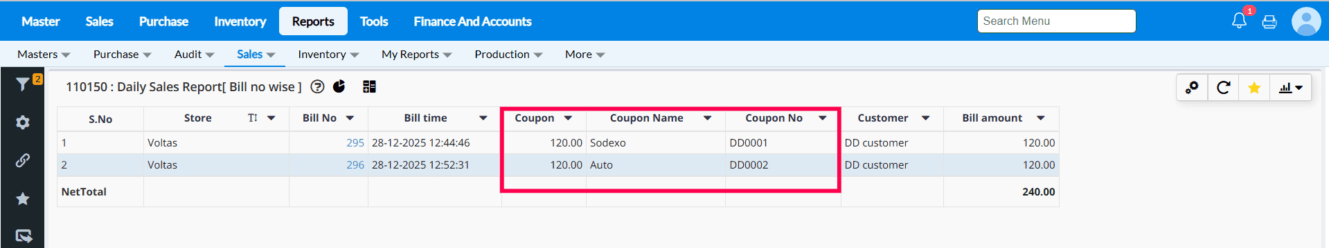 Reports To Track The Coupon Bill1. Daily Sales Report ( Bill No Wise ) Report Path - Report → Sales → Sales →Daily Sales Report ( Bill No Wise )